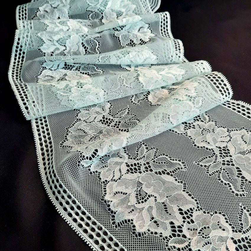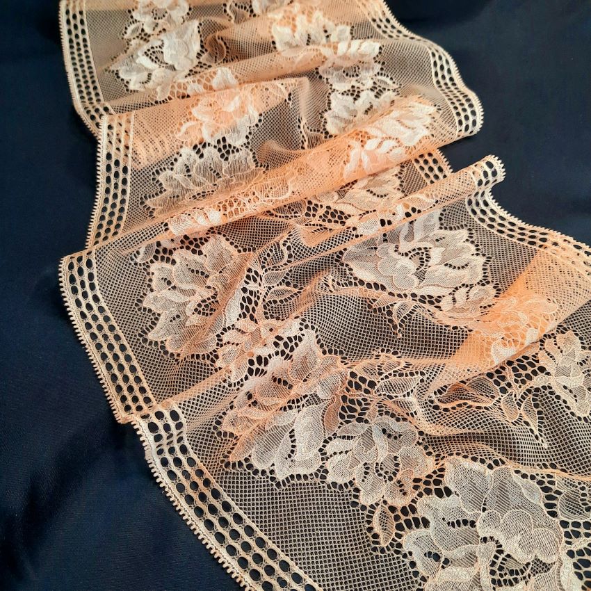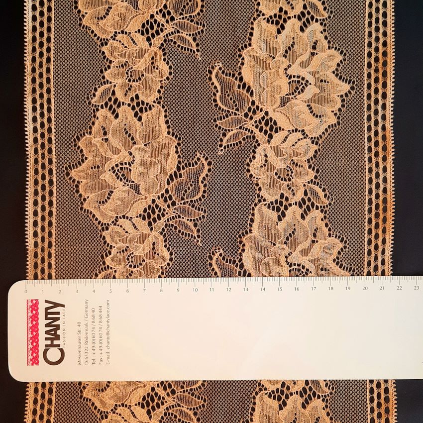 Depending on the quantity, lace fabrics will either be put onto a roll/spool and packed into cartons or, if the quantity is low, they may also be just folded and put into an envelope. The meterage per roll/spool varies depending on the width.