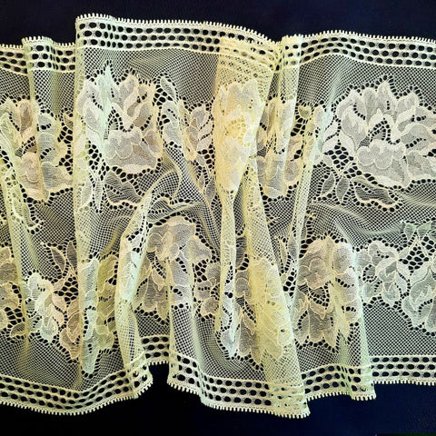 Lace TypeGalloon Laces are distinguished by having scallops or having other shape designs on both edges. They are mostly symmetrical and available in many widths, making them one of the most versatile lace types. These laces are usually elastic and stretchy. So you want to use some lace for something? Get yourself some Galloon laces! |