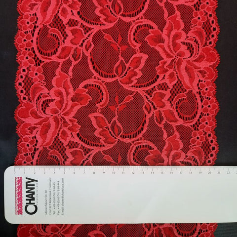 Depending on the quantity, lace fabrics will either be put onto a roll/spool and packed into cartons or, if the quantity is low, they may also be just folded and put into an envelope. The meterage per roll/spool varies depending on the width.