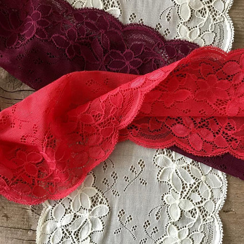Lace TypeGalloon Laces are distinguished by having scallops or having other shape designs on both edges. They are mostly symmetrical and available in many widths, making them one of the most versatile lace types. These laces are usually elastic and stretchy. So you want to use some lace for something? Get yourself some Galloon laces! |
