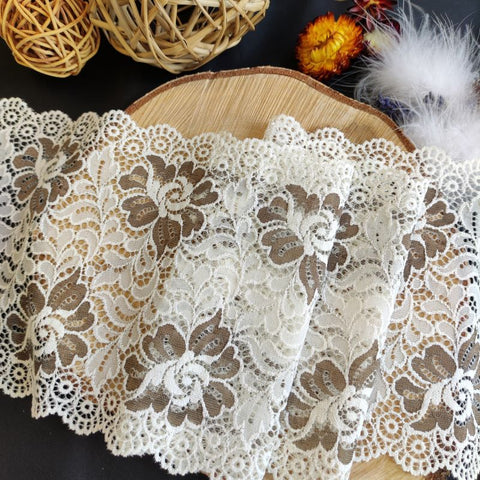 Depending on the quantity, lace fabrics will either be put onto a roll/spool and packed into cartons or, if the quantity is low, they may also be just folded and put into an envelope. The meterage per roll/spool varies depending on the width.
