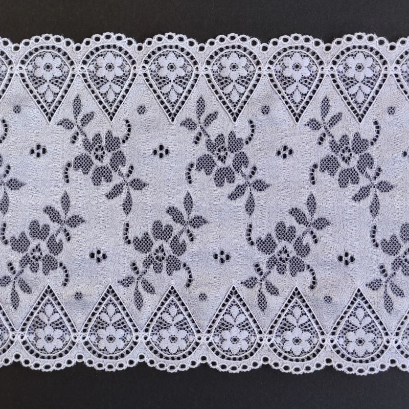 Depending on the quantity, lace fabrics will either be put onto a roll/spool and packed into cartons or, if the quantity is low, they may also be just folded and put into an envelope. The meterage per roll/spool varies depending on the width.
