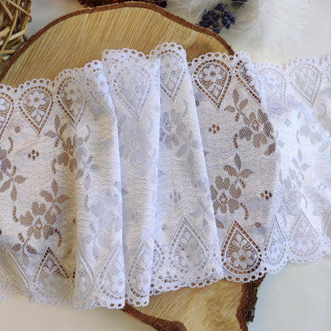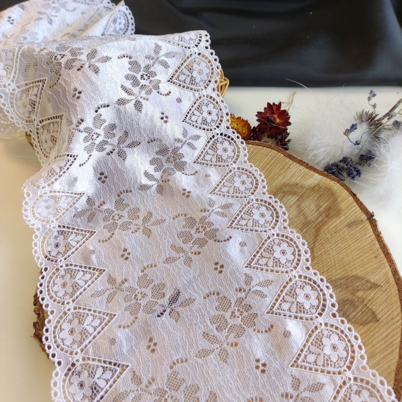 Lace TypeGalloon Laces are distinguished by having scallops or having other shape designs on both edges. They are mostly symmetrical and available in many widths, making them one of the most versatile lace types. These laces are usually elastic and stretchy. So you want to use some lace for something? Get yourself some Galloon laces! |