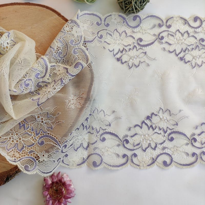 Lace TypeGalloon Laces are distinguished by having scallops or having other shape designs on both edges. They are mostly symmetrical and available in many widths, making them one of the most versatile lace types. These laces are usually elastic and stretchy. So you want to use some lace for something? Get yourself some Galloon laces! |