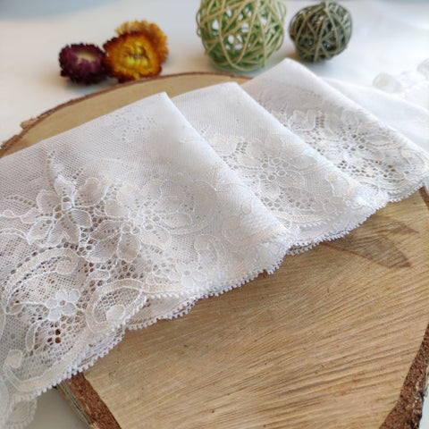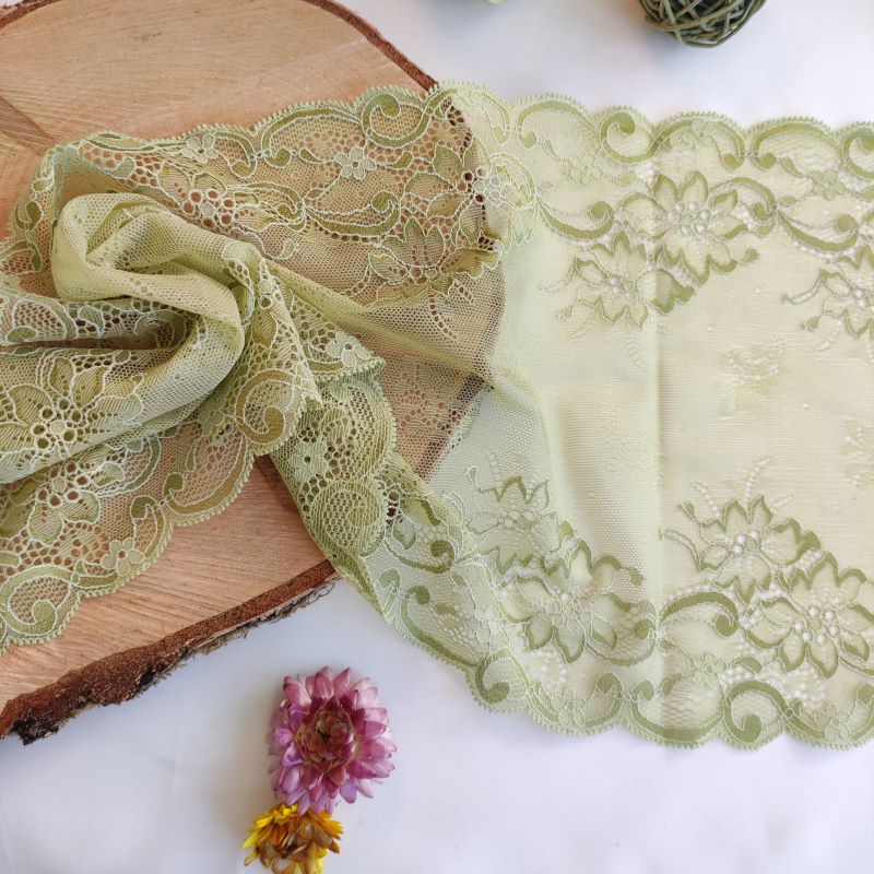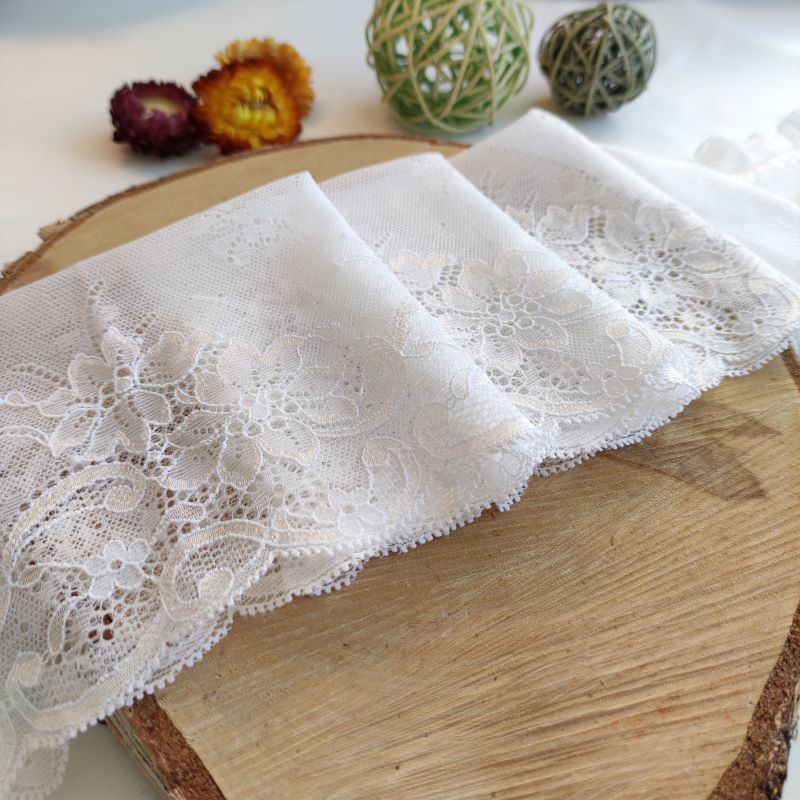 Depending on the quantity, lace fabrics will either be put onto a roll/spool and packed into cartons or, if the quantity is low, they may also be just folded and put into an envelope. The meterage per roll/spool varies depending on the width.