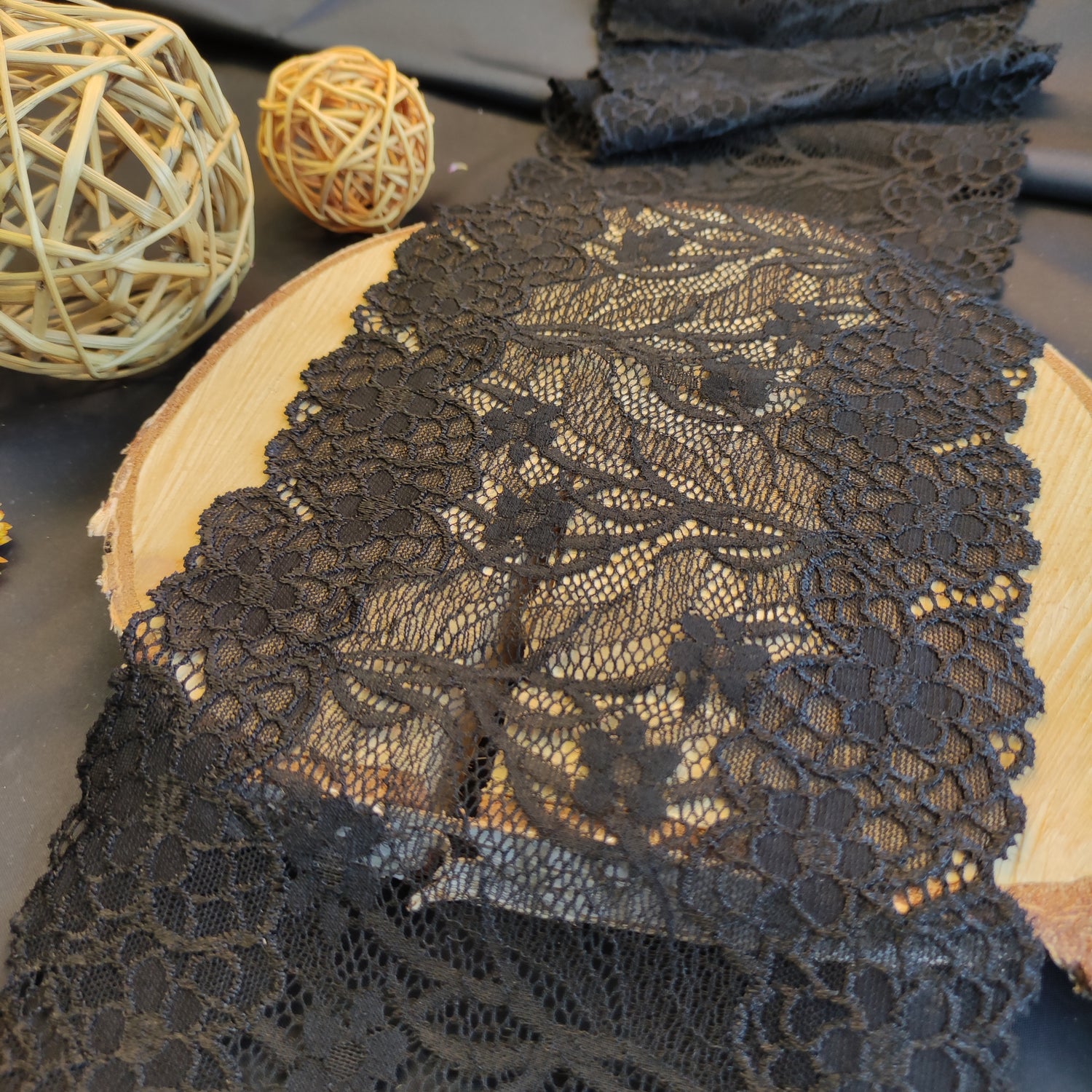 Depending on the quantity, lace fabrics will either be put onto a roll/spool and packed into cartons or, if the quantity is low, they may also be just folded and put into an envelope. The meterage per roll/spool varies depending on the width.