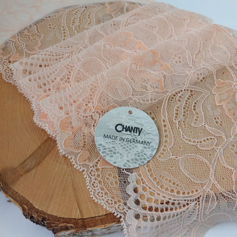 Depending on the quantity, lace fabrics will either be put onto a roll/spool and packed into cartons or, if the quantity is low, they may also be just folded and put into an envelope. The meterage per roll/spool varies depending on the width.