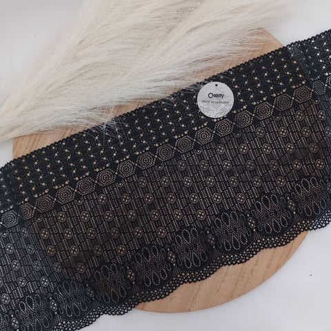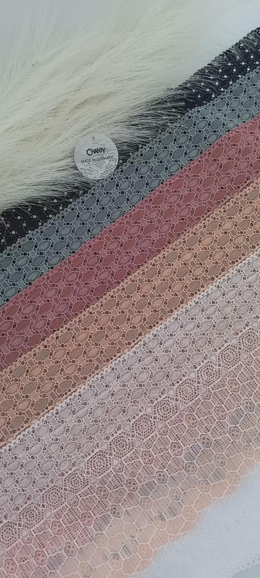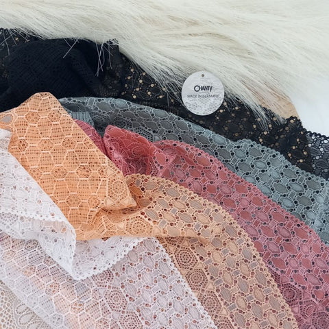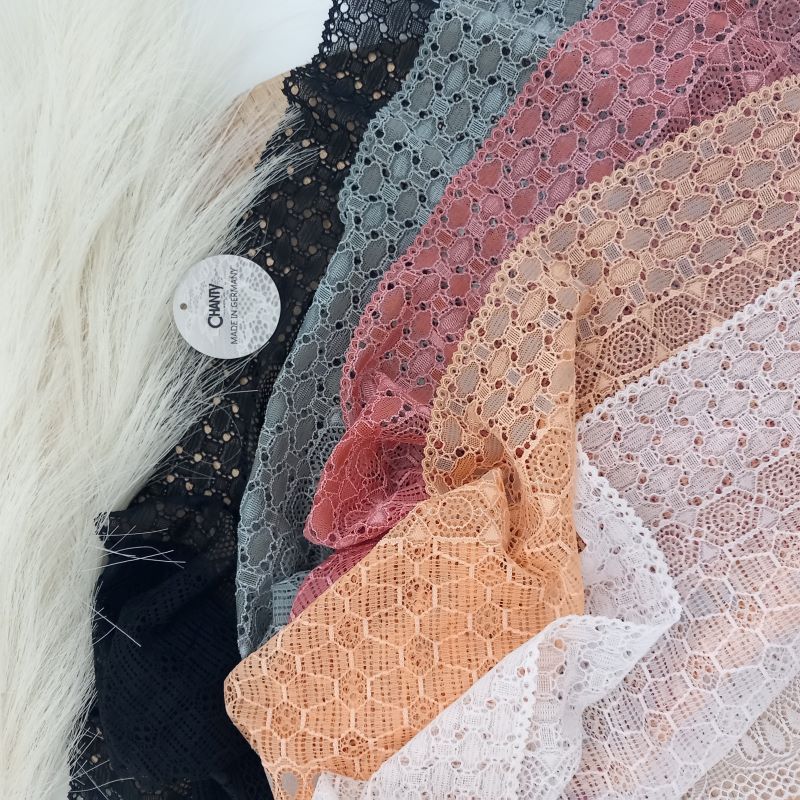 Lace TypeGalloon Laces are distinguished by having scallops or having other shape designs on both edges. They are mostly symmetrical and available in many widths, making them one of the most versatile lace types. These laces are usually elastic and stretchy. So you want to use some lace for something? Get yourself some Galloon laces! |