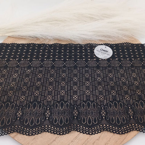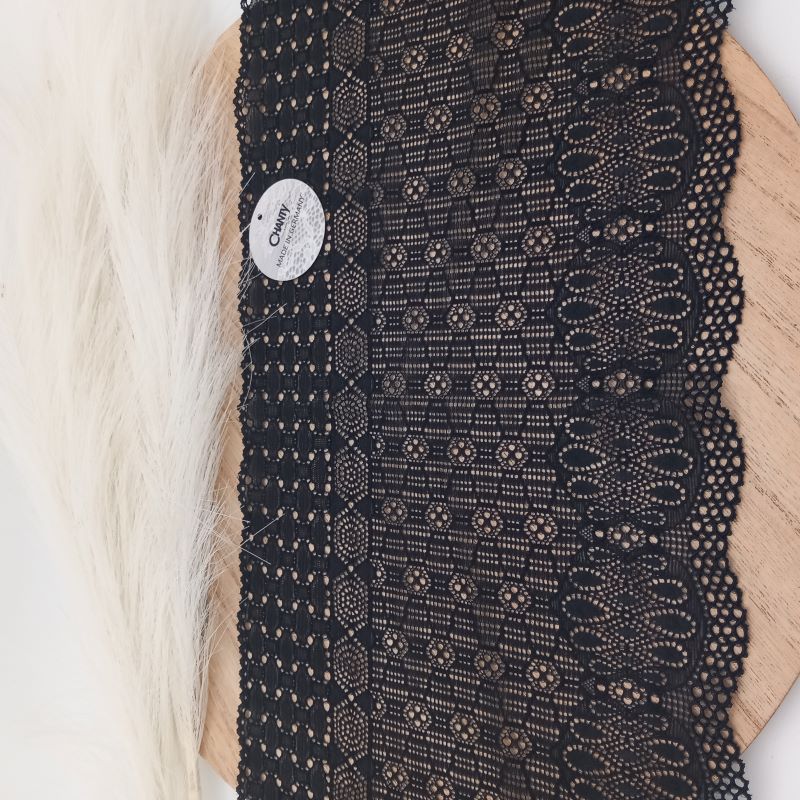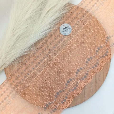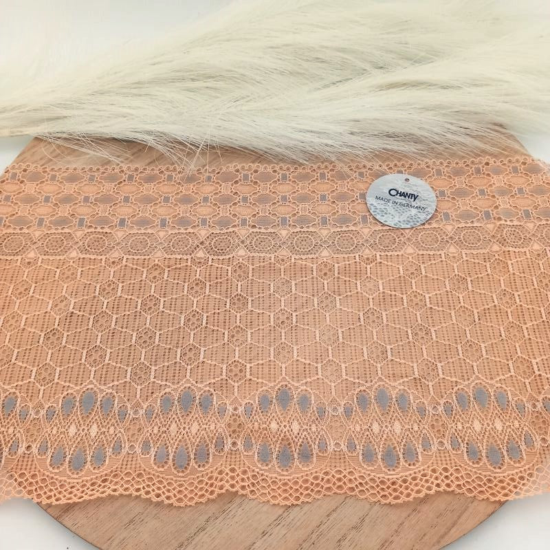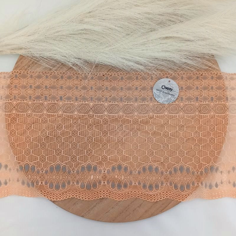 Depending on the quantity, lace fabrics will either be put onto a roll/spool and packed into cartons or, if the quantity is low, they may also be just folded and put into an envelope. The meterage per roll/spool varies depending on the width.
