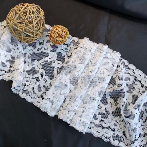 Depending on the quantity, lace fabrics will either be put onto a roll/spool and packed into cartons or, if the quantity is low, they may also be just folded and put into an envelope. The meterage per roll/spool varies depending on the width.