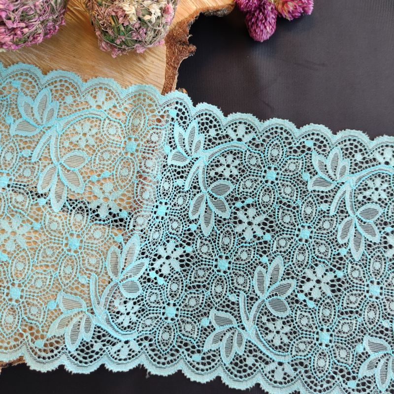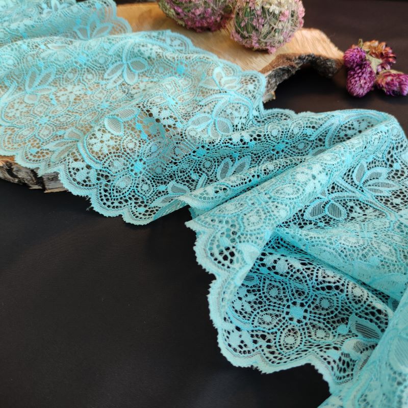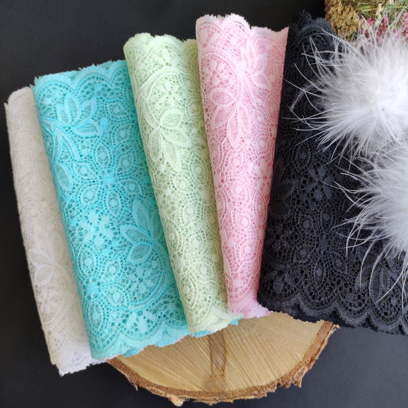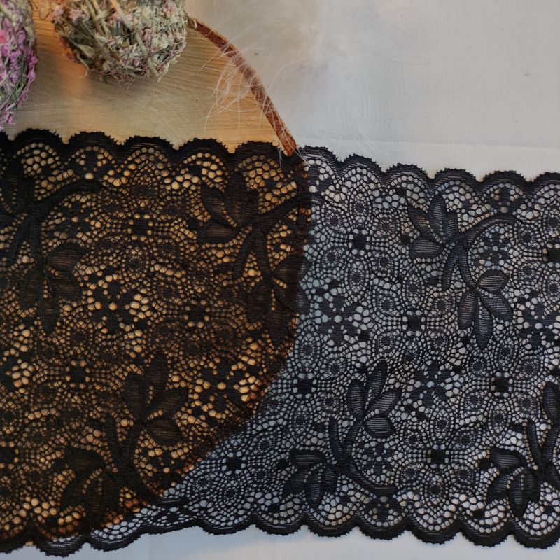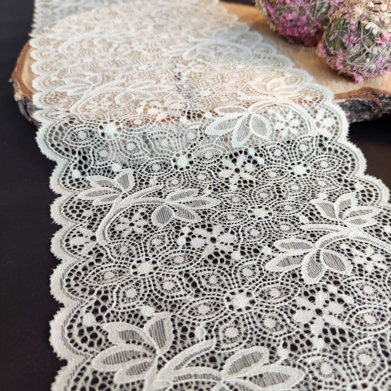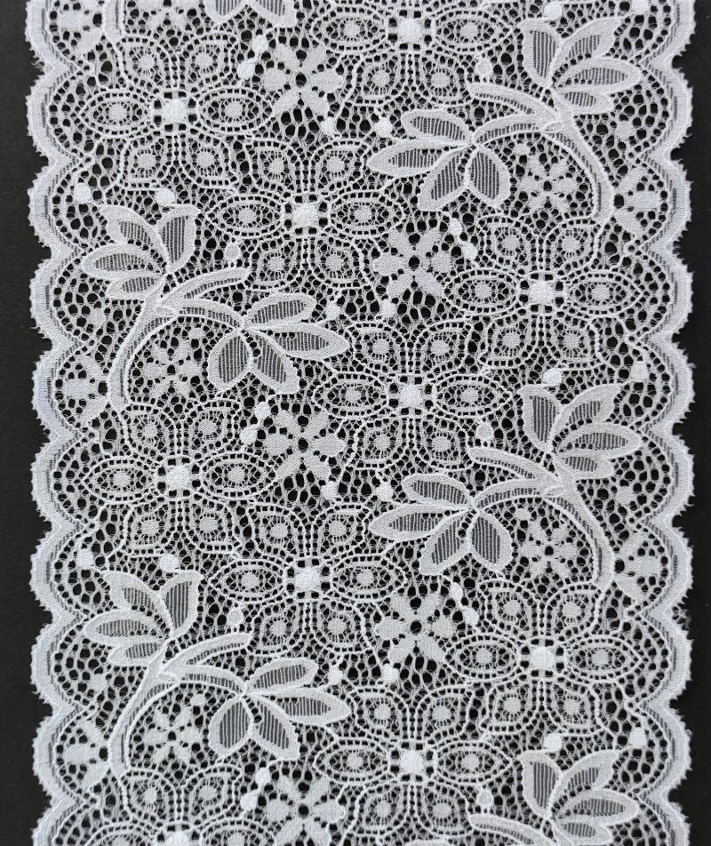 Depending on the quantity, lace fabrics will either be put onto a roll/spool and packed into cartons or, if the quantity is low, they may also be just folded and put into an envelope. The meterage per roll/spool varies depending on the width.