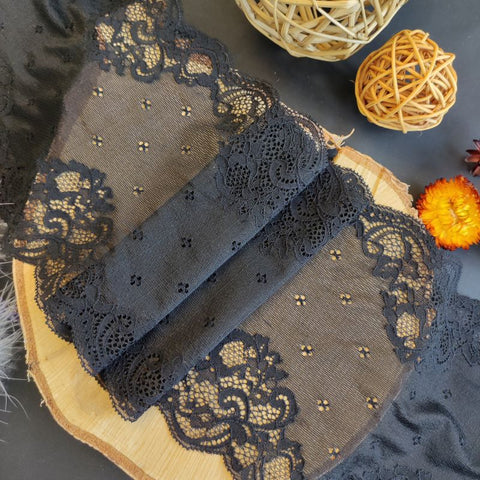 Depending on the quantity, lace fabrics will either be put onto a roll/spool and packed into cartons or, if the quantity is low, they may also be just folded and put into an envelope. The meterage per roll/spool varies depending on the width.