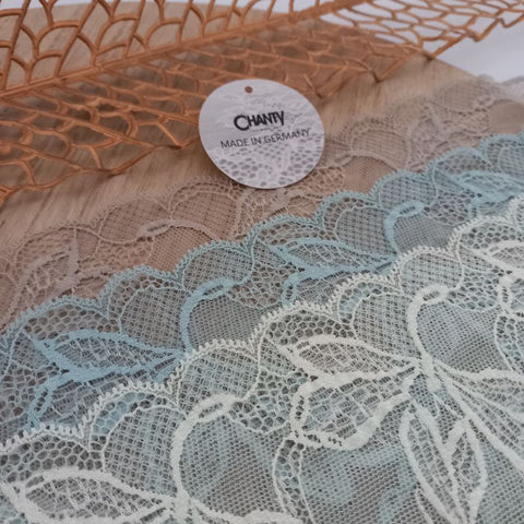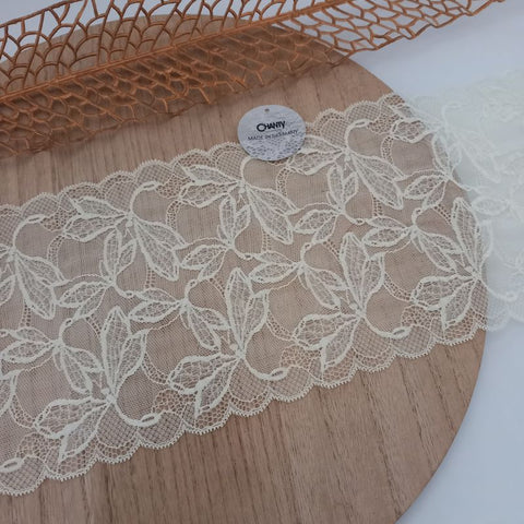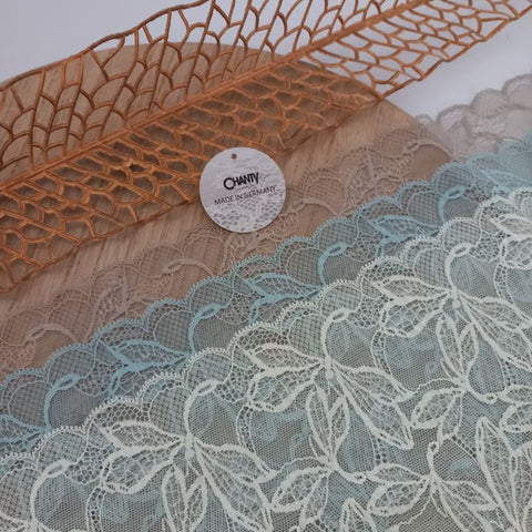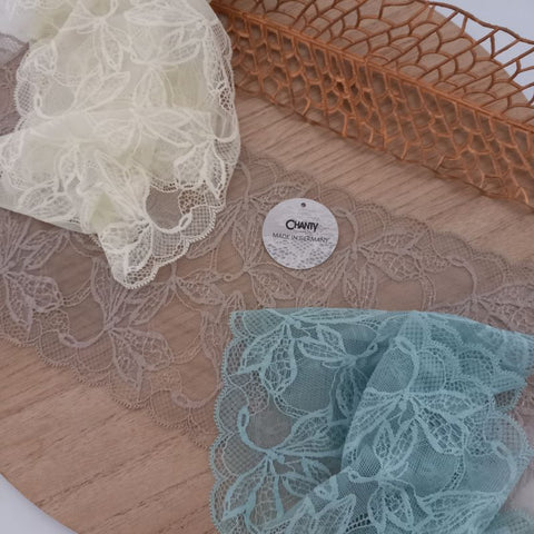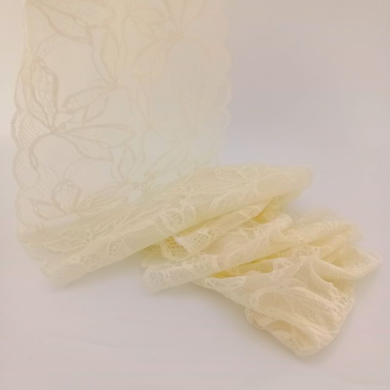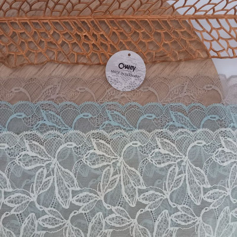 Depending on the quantity, lace fabrics will either be put onto a roll/spool and packed into cartons or, if the quantity is low, they may also be just folded and put into an envelope. The meterage per roll/spool varies depending on the width.