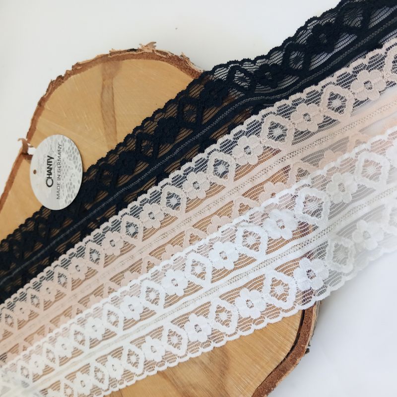 Lace TypeSleek, thin and durable. Elastic and rigid, everything goes. Laces up to 6 cm width belong to this group. And the name is the game here! The Trim or Edge laces are usually used as decoration or straps, they can also be used to contour shapes. And let us not get started on possible floral arrangements. |
