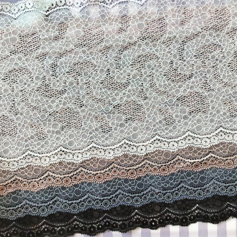 Lace TypeGalloon Laces are distinguished by having scallops or having other shape designs on both edges. They are mostly symmetrical and available in many widths, making them one of the most versatile lace types. These laces are usually elastic and stretchy. So you want to use some lace for something? Get yourself some Galloon laces! |