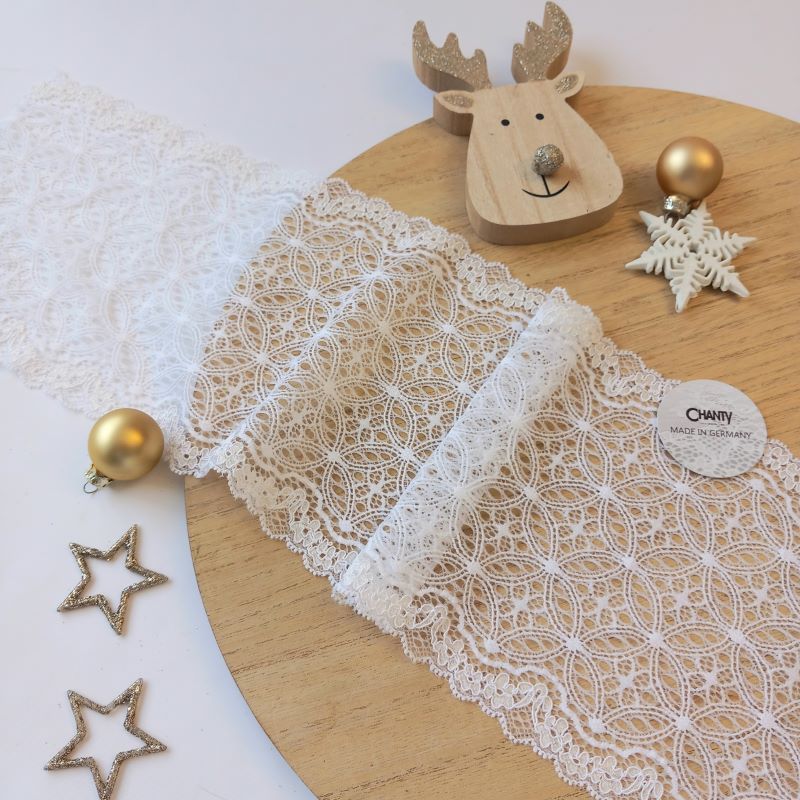 Depending on the quantity, lace fabrics will either be put onto a roll/spool and packed into cartons or, if the quantity is low, they may also be just folded and put into an envelope. The meterage per roll/spool varies depending on the width.