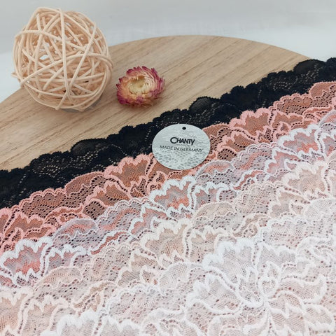 Lace TypeGalloon Laces are distinguished by having scallops or having other shape designs on both edges. They are mostly symmetrical and available in many widths, making them one of the most versatile lace types. These laces are usually elastic and stretchy. So you want to use some lace for something? Get yourself some Galloon laces! |