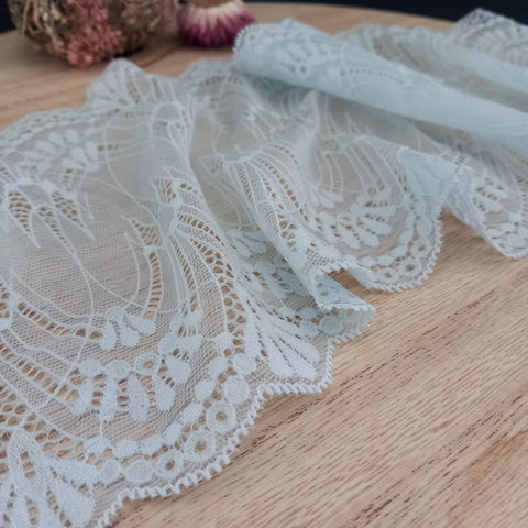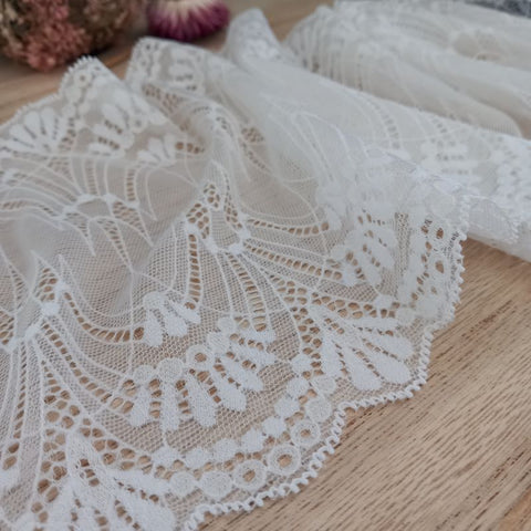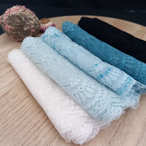 Depending on the quantity, lace fabrics will either be put onto a roll/spool and packed into cartons or, if the quantity is low, they may also be just folded and put into an envelope. The meterage per roll/spool varies depending on the width.