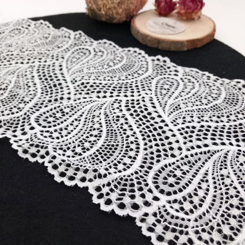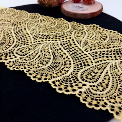 Depending on the quantity, lace fabrics will either be put onto a roll/spool and packed into cartons or, if the quantity is low, they may also be just folded and put into an envelope. The meterage per roll/spool varies depending on the width.