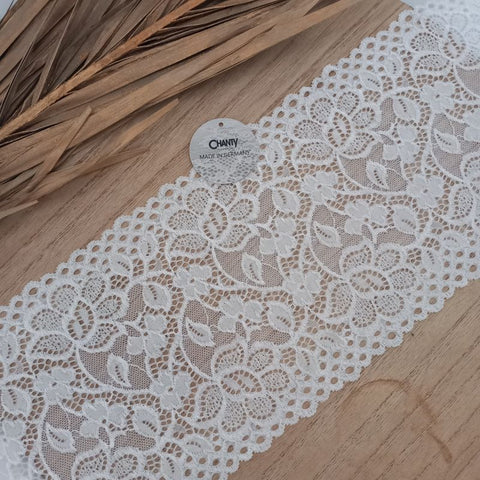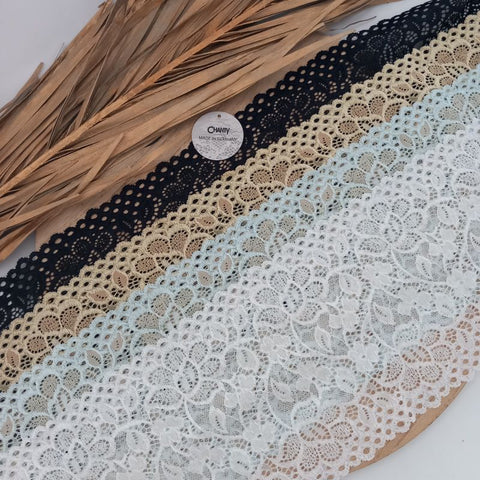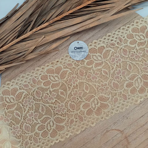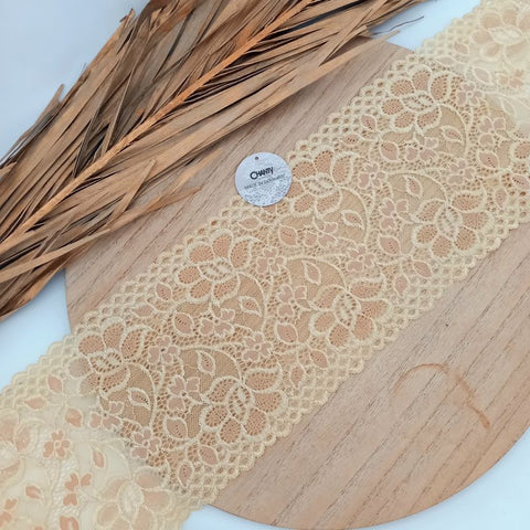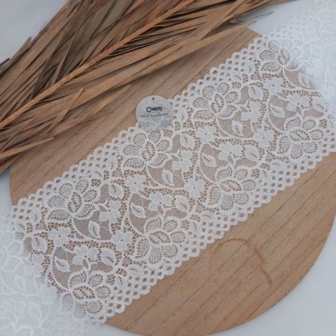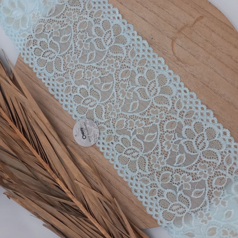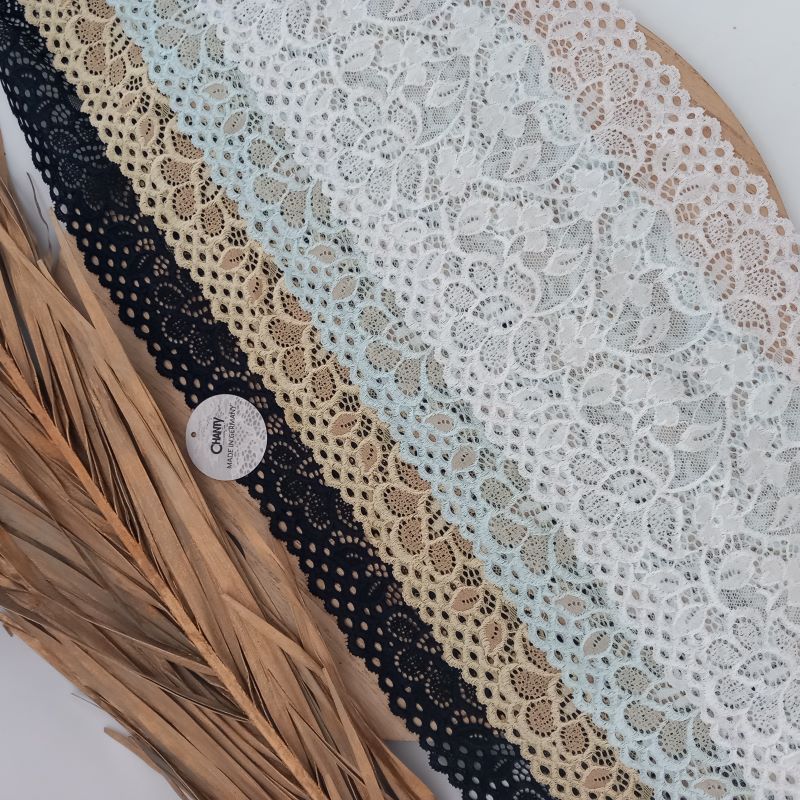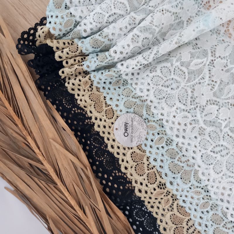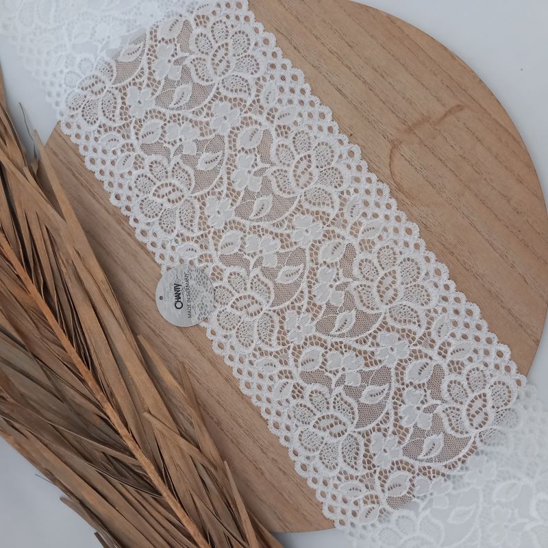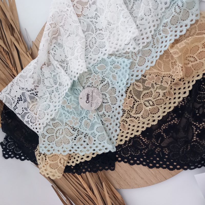 Depending on the quantity, lace fabrics will either be put onto a roll/spool and packed into cartons or, if the quantity is low, they may also be just folded and put into an envelope. The meterage per roll/spool varies depending on the width.