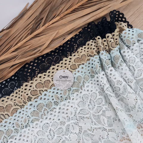 Lace TypeGalloon Laces are distinguished by having scallops or having other shape designs on both edges. They are mostly symmetrical and available in many widths, making them one of the most versatile lace types. These laces are usually elastic and stretchy. So you want to use some lace for something? Get yourself some Galloon laces! |