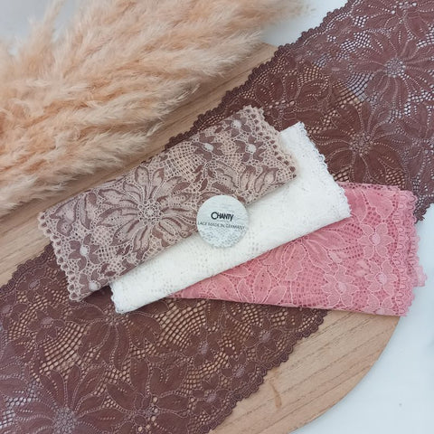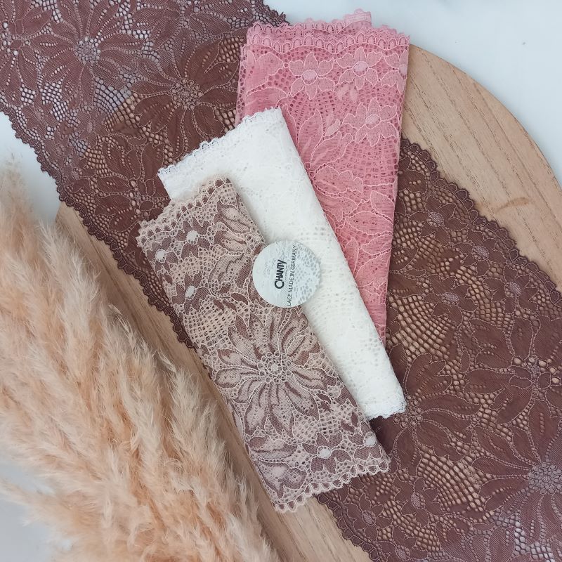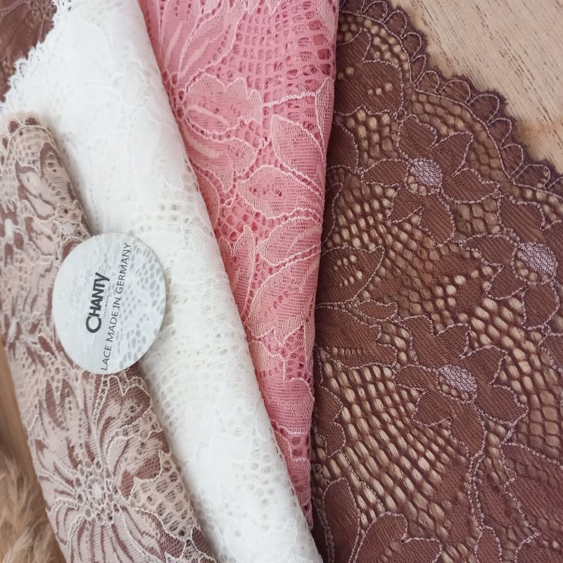Depending on the quantity, lace fabrics will either be put onto a roll/spool and packed into cartons or, if the quantity is low, they may also be just folded and put into an envelope. The meterage per roll/spool varies depending on the width.