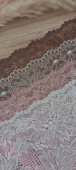 Lace TypeGalloon Laces are distinguished by having scallops or having other shape designs on both edges. They are mostly symmetrical and available in many widths, making them one of the most versatile lace types. These laces are usually elastic and stretchy. So you want to use some lace for something? Get yourself some Galloon laces! |