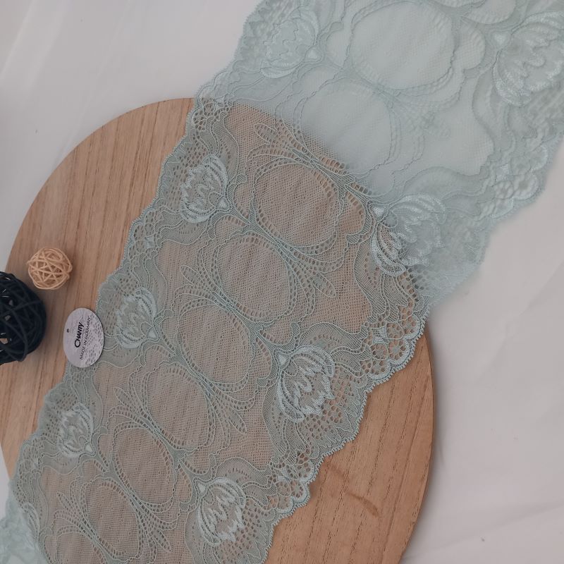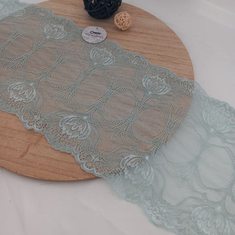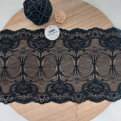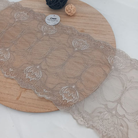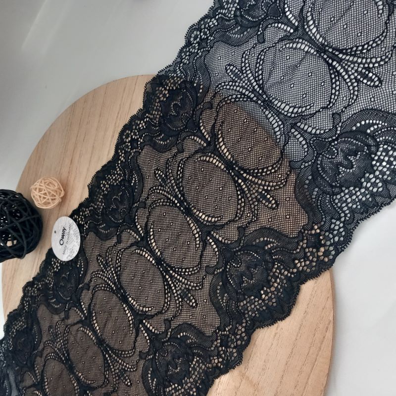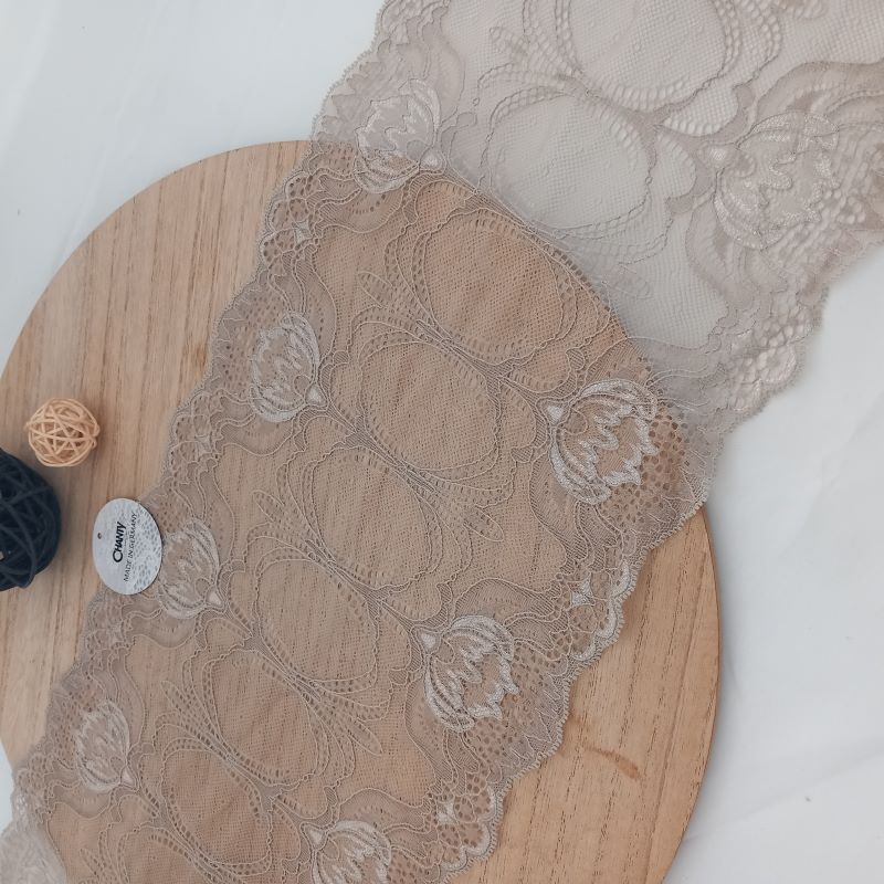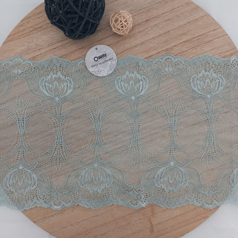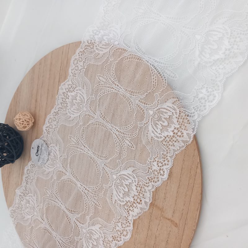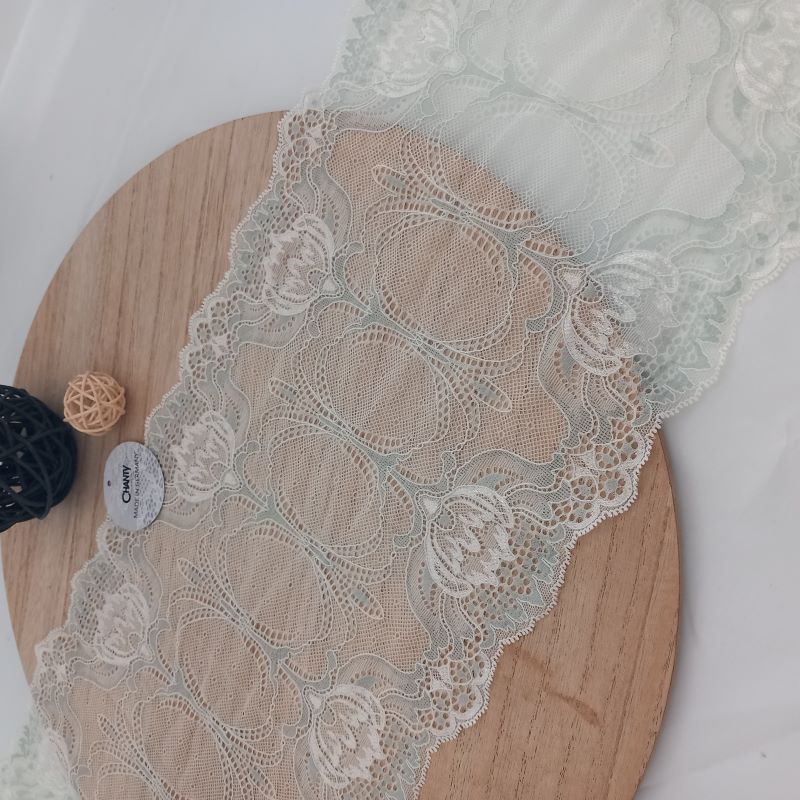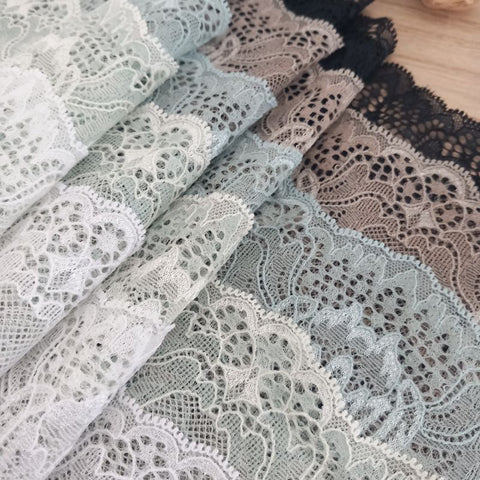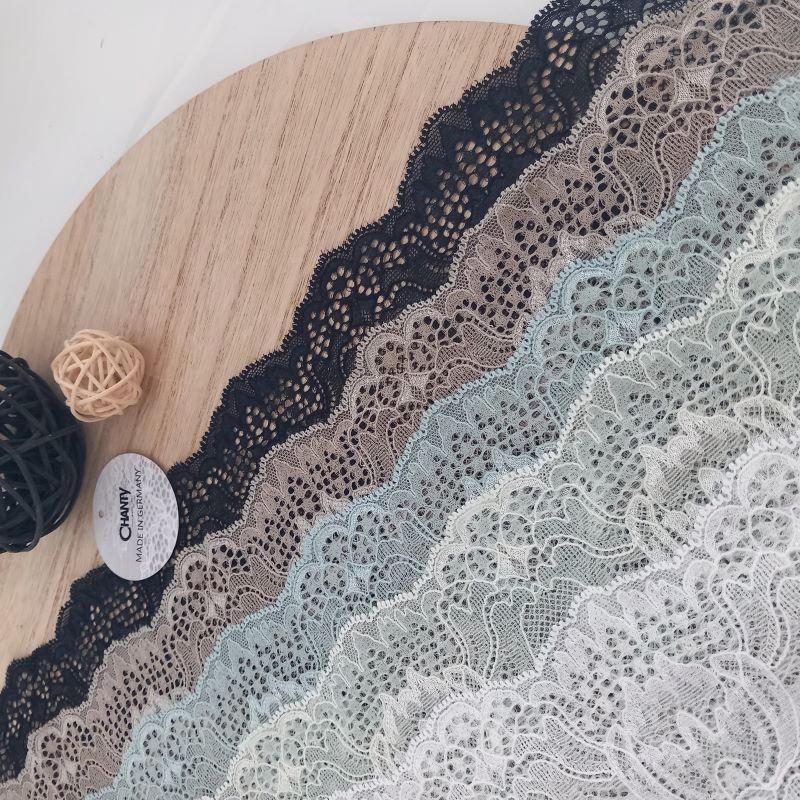 Depending on the quantity, lace fabrics will either be put onto a roll/spool and packed into cartons or, if the quantity is low, they may also be just folded and put into an envelope. The meterage per roll/spool varies depending on the width.