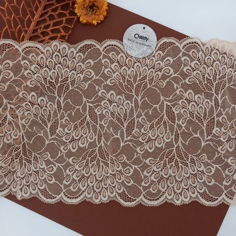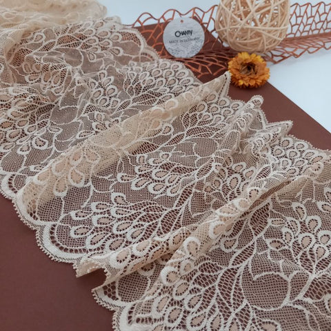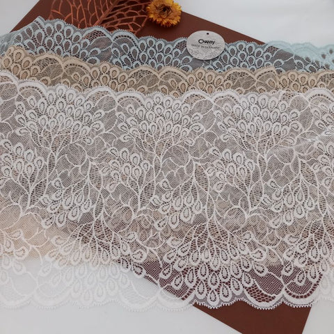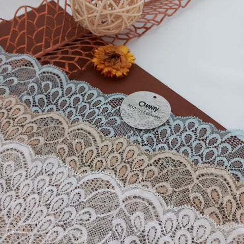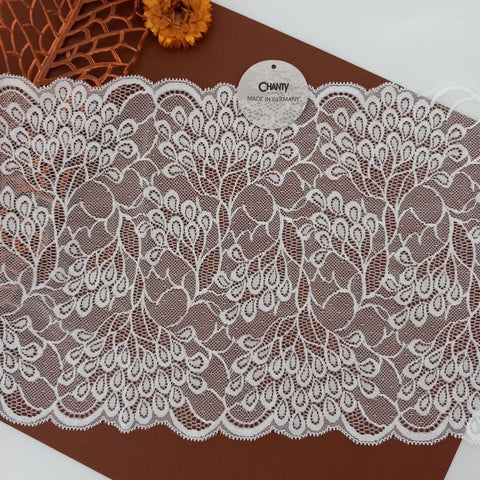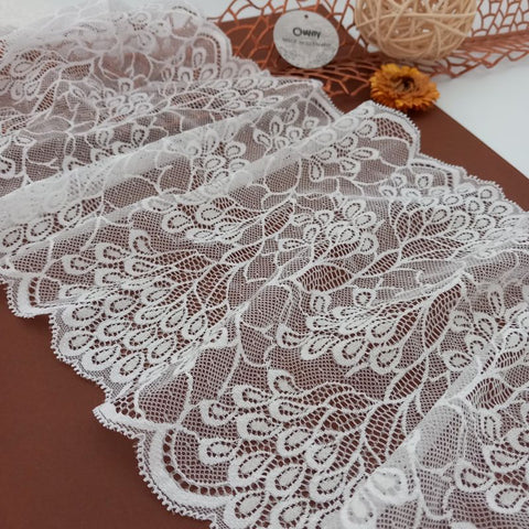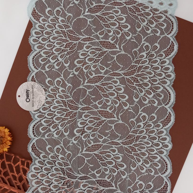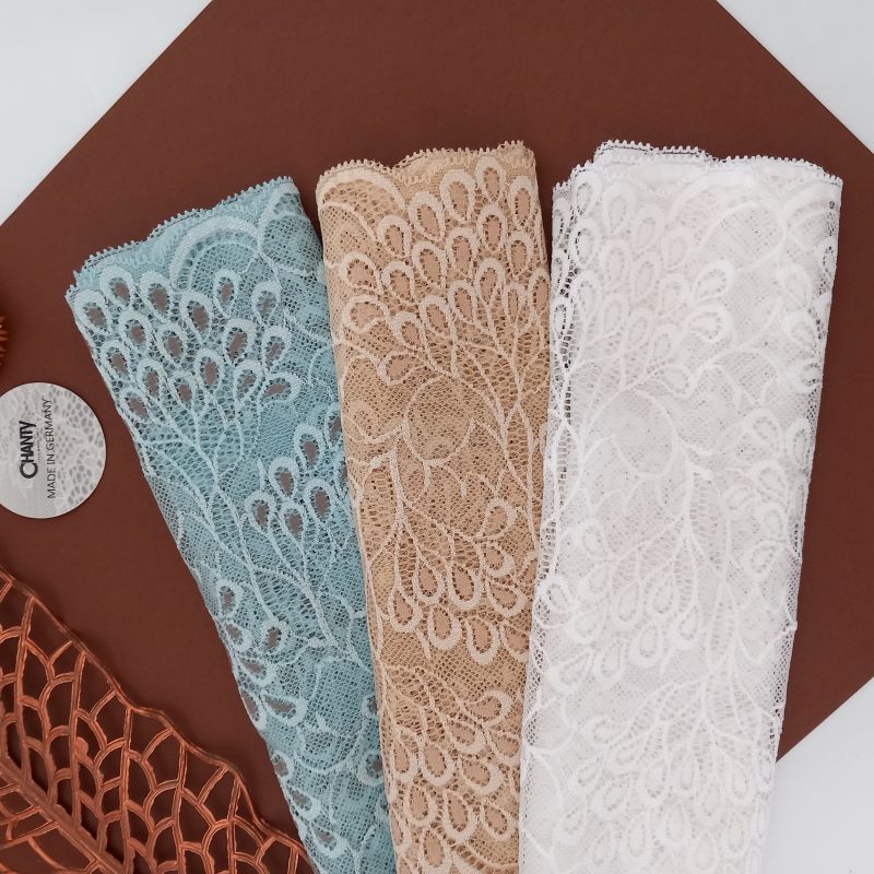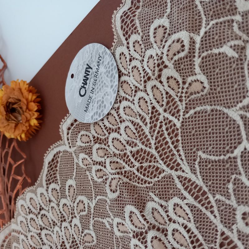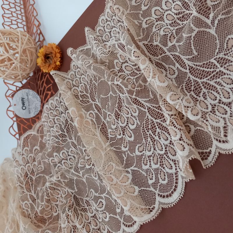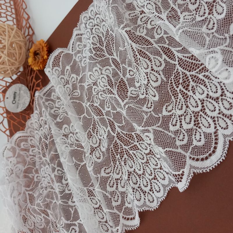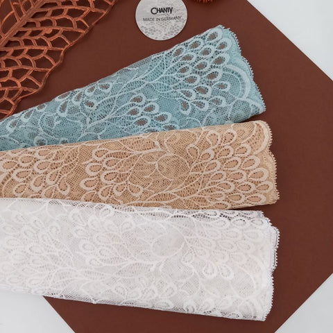 Depending on the quantity, lace fabrics will either be put onto a roll/spool and packed into cartons or, if the quantity is low, they may also be just folded and put into an envelope. The meterage per roll/spool varies depending on the width.