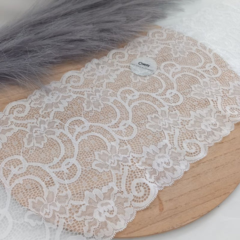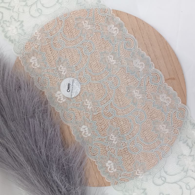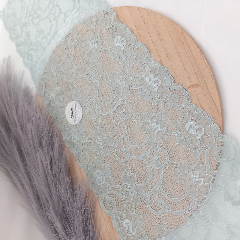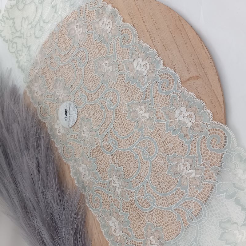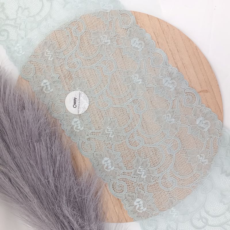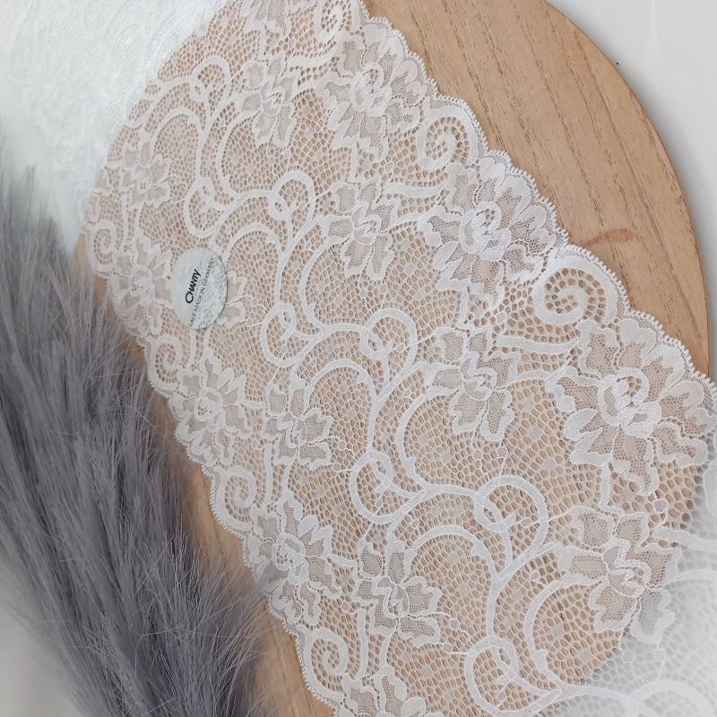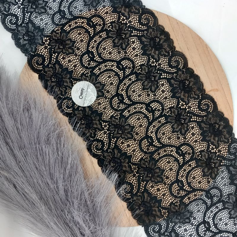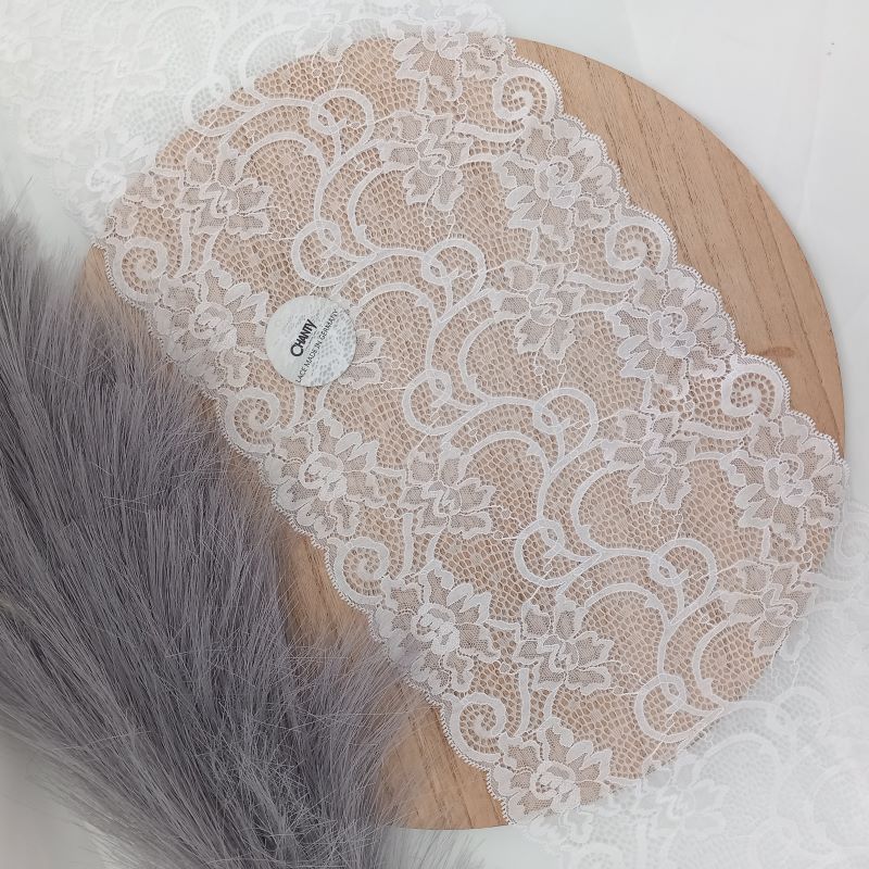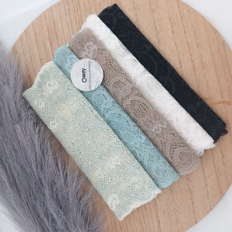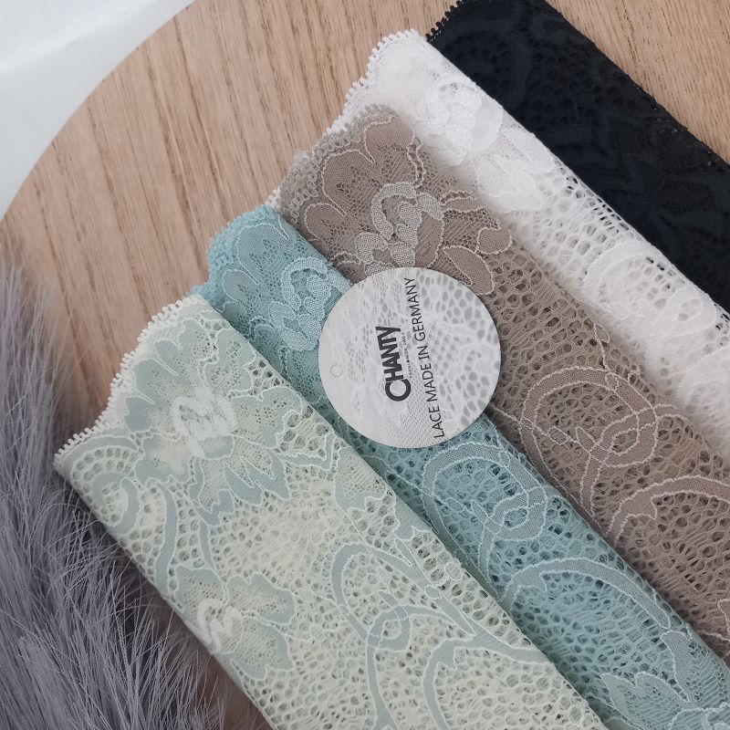 Depending on the quantity, lace fabrics will either be put onto a roll/spool and packed into cartons or, if the quantity is low, they may also be just folded and put into an envelope. The meterage per roll/spool varies depending on the width.