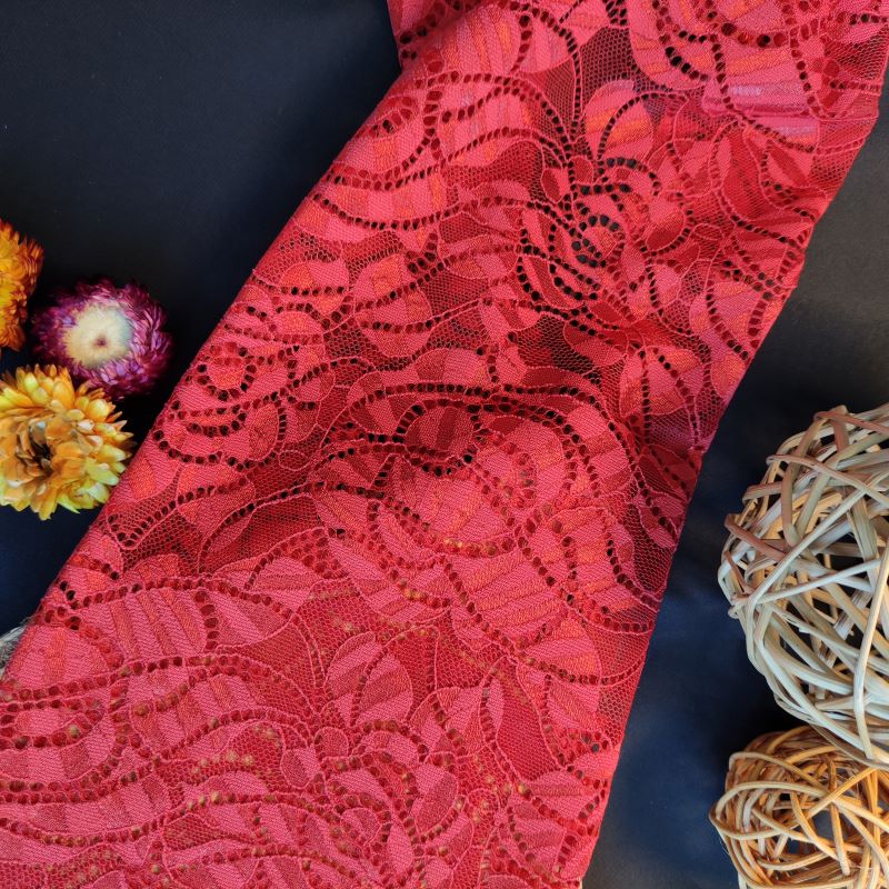 Depending on the quantity, lace fabrics will either be put onto a roll/spool and packed into cartons or, if the quantity is low, they may also be just folded and put into an envelope. The meterage per roll/spool varies depending on the width.