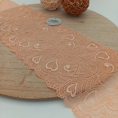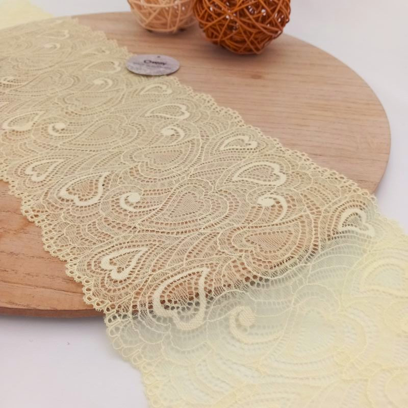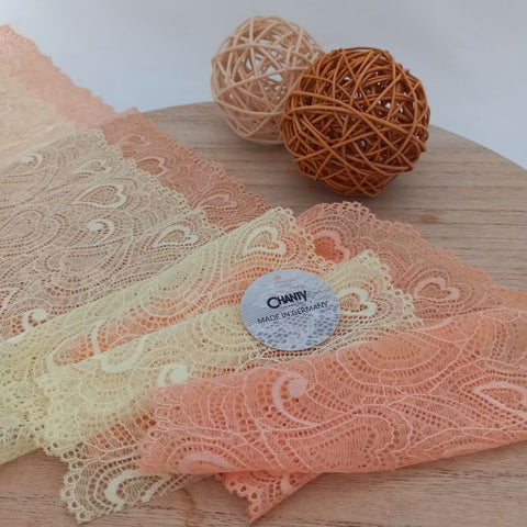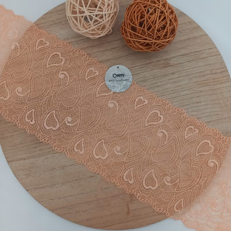 Depending on the quantity, lace fabrics will either be put onto a roll/spool and packed into cartons or, if the quantity is low, they may also be just folded and put into an envelope. The meterage per roll/spool varies depending on the width.