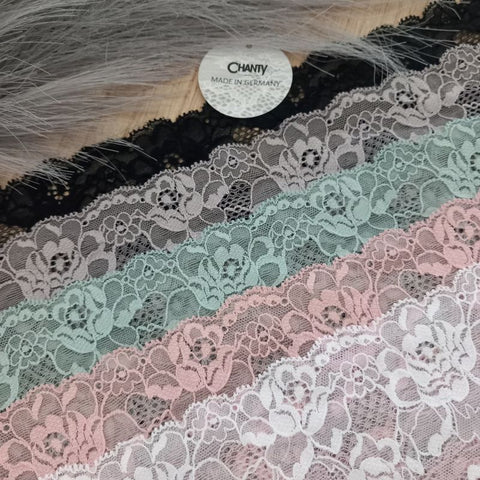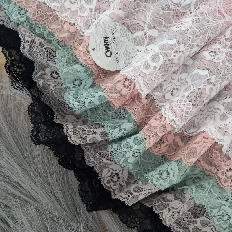 Lace TypeGalloon Laces are distinguished by having scallops or having other shape designs on both edges. They are mostly symmetrical and available in many widths, making them one of the most versatile lace types. These laces are usually elastic and stretchy. So you want to use some lace for something? Get yourself some Galloon laces! |