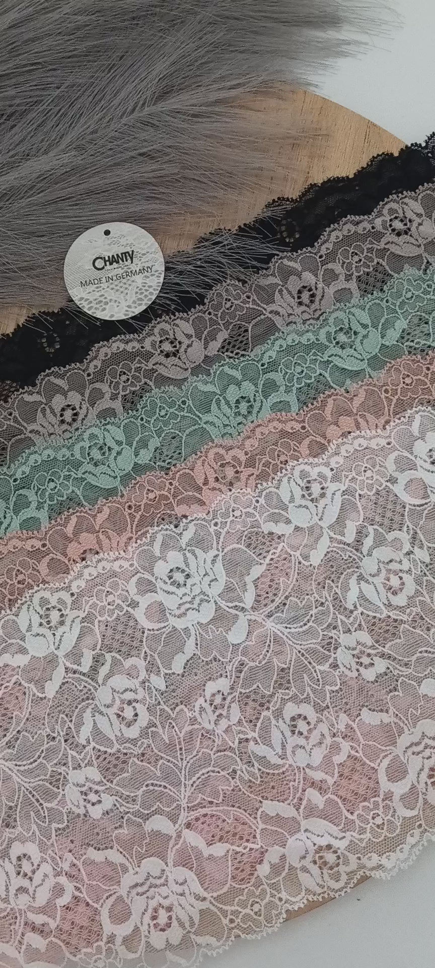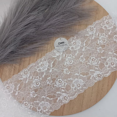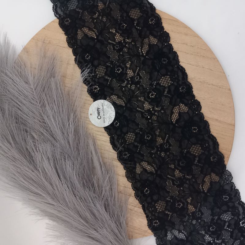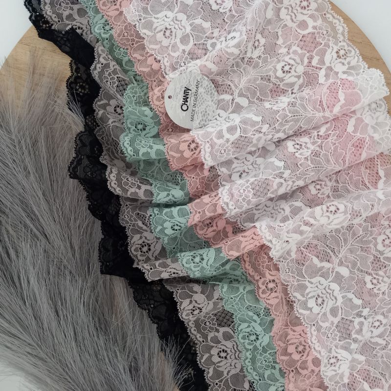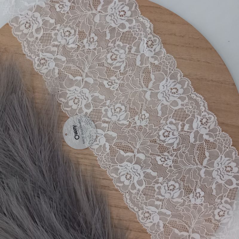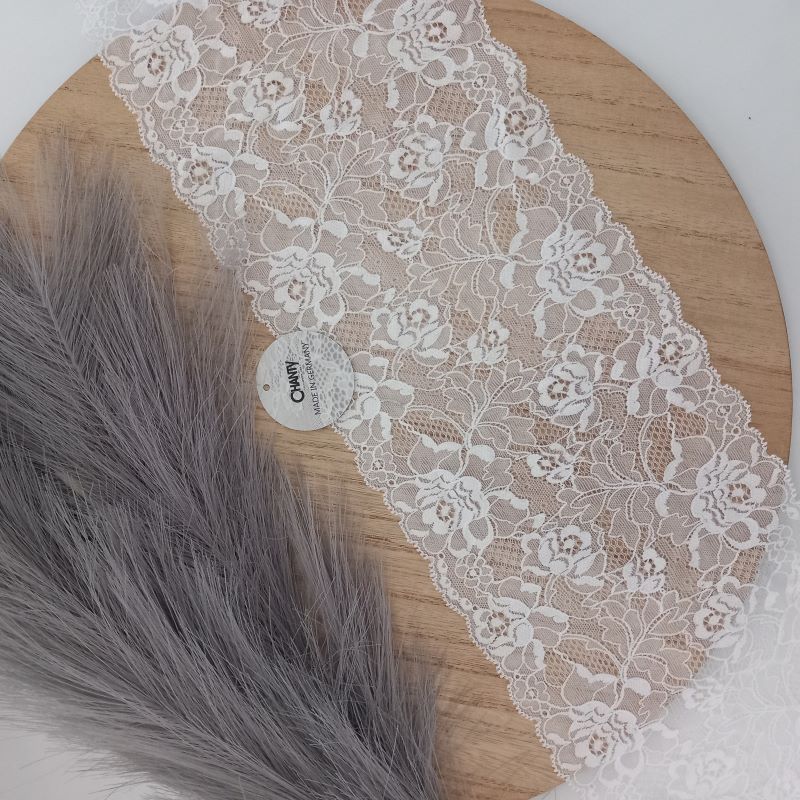 Depending on the quantity, lace fabrics will either be put onto a roll/spool and packed into cartons or, if the quantity is low, they may also be just folded and put into an envelope. The meterage per roll/spool varies depending on the width.