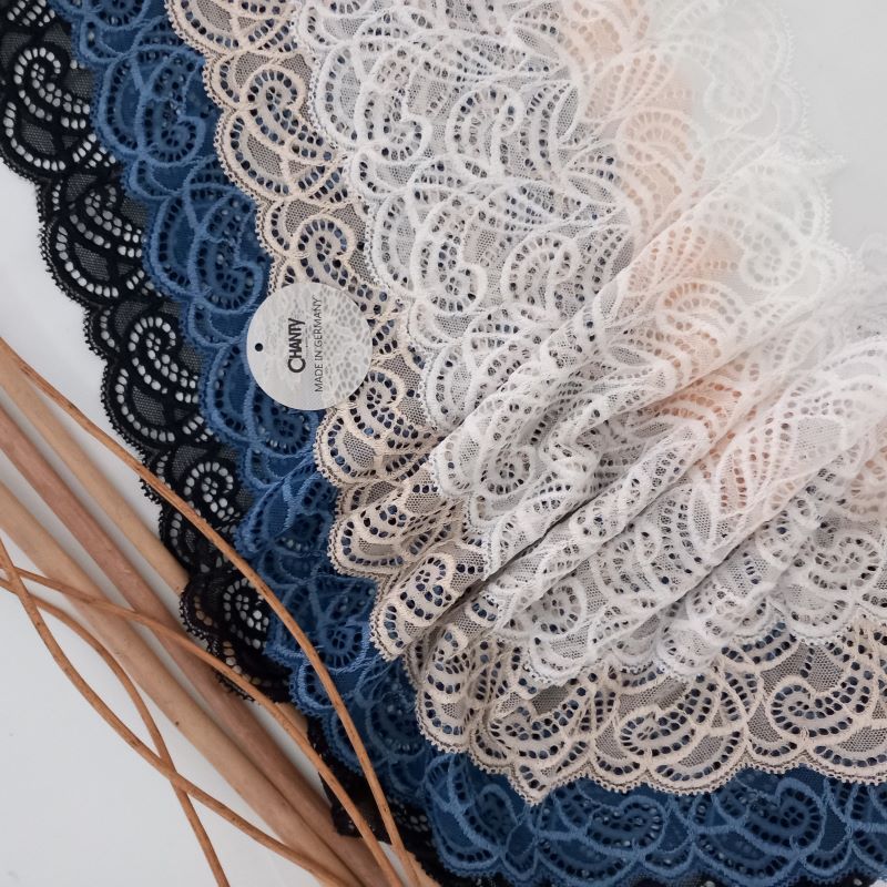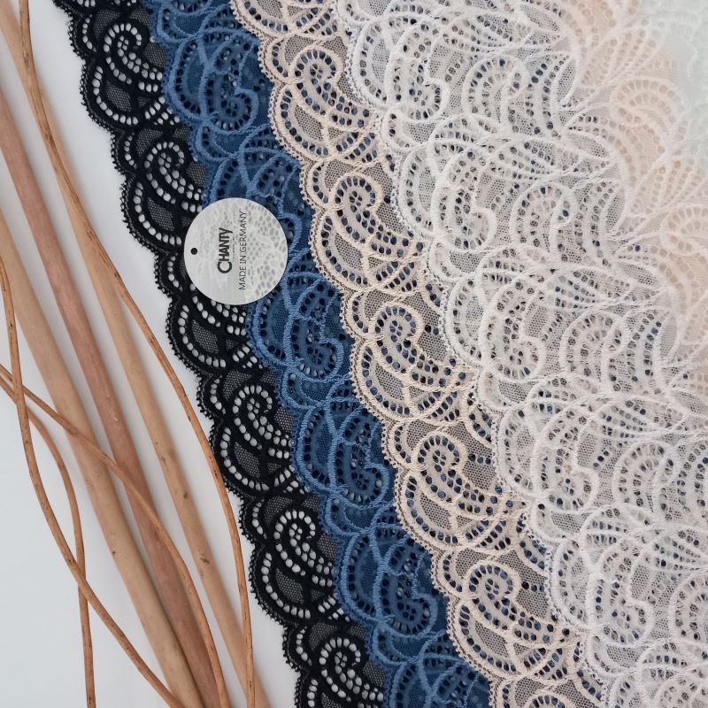 Lace TypeGalloon Laces are distinguished by having scallops or having other shape designs on both edges. They are mostly symmetrical and available in many widths, making them one of the most versatile lace types. These laces are usually elastic and stretchy. So you want to use some lace for something? Get yourself some Galloon laces! |