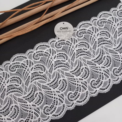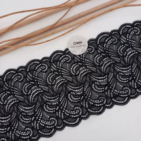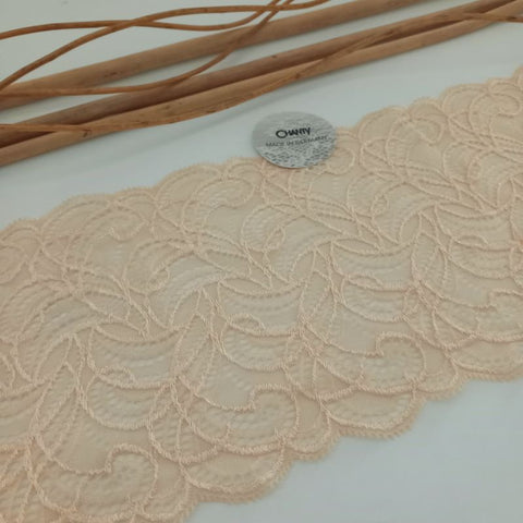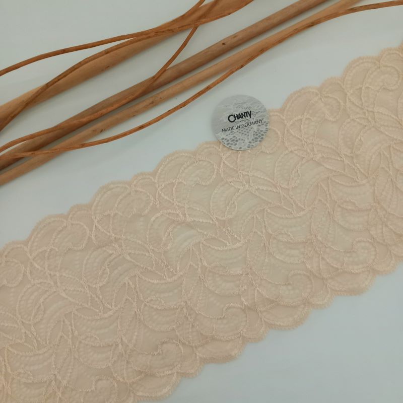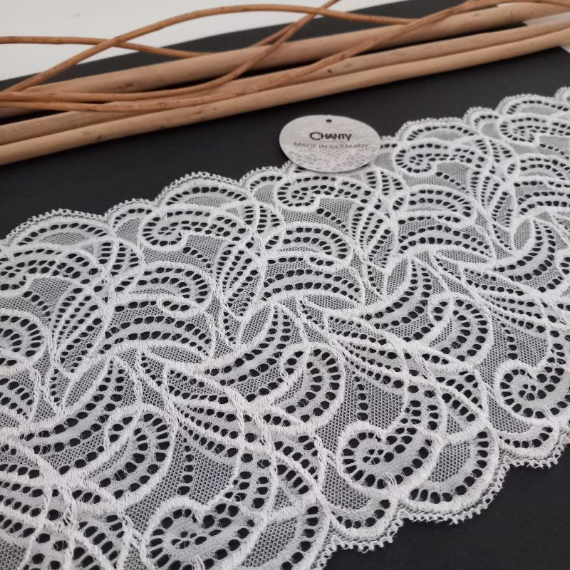 Depending on the quantity, lace fabrics will either be put onto a roll/spool and packed into cartons or, if the quantity is low, they may also be just folded and put into an envelope. The meterage per roll/spool varies depending on the width.