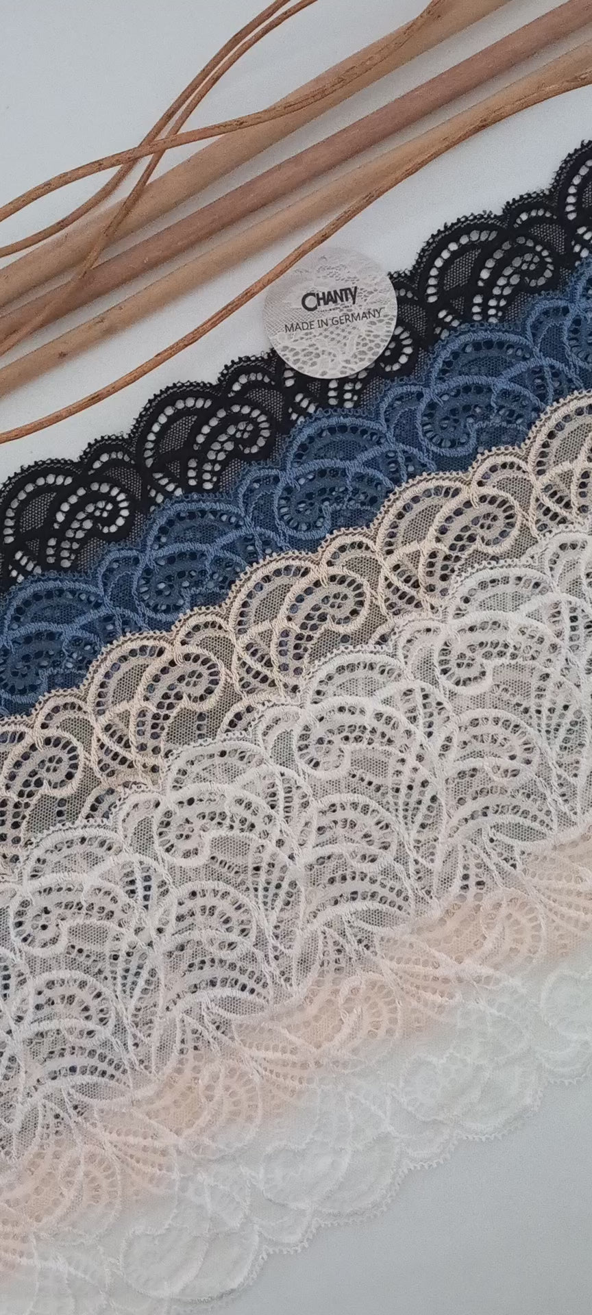 Use forDecoration, necklaces or sewn to the edges of dresses, shirts, skirts, underwear and used to create your own Dessous. You can also do inserts and cut outs or wrap a gift with these laces. Fitting for Bralettes, Slips or Lingerie Sets. There is no end to imagination on what to do with a Galloon lace. |