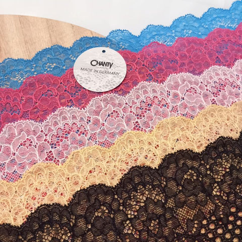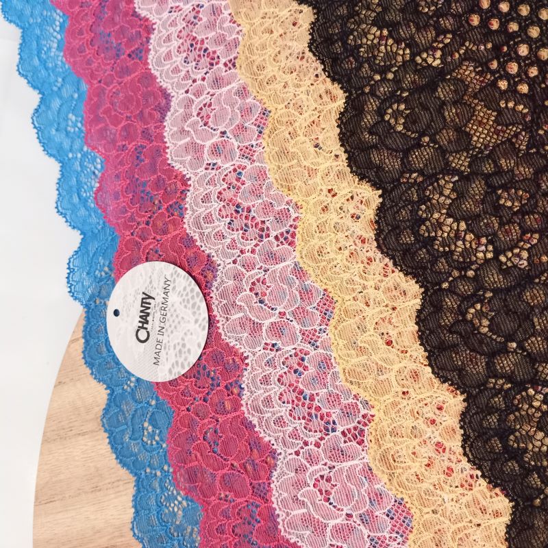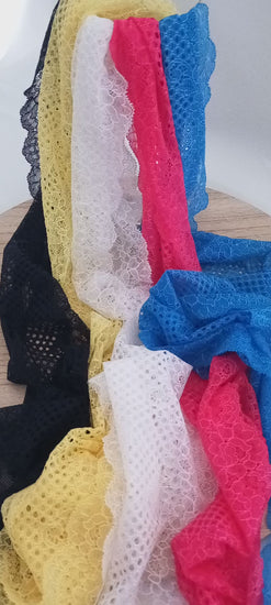 Lace TypeGalloon Laces are distinguished by having scallops or having other shape designs on both edges. They are mostly symmetrical and available in many widths, making them one of the most versatile lace types. These laces are usually elastic and stretchy. So you want to use some lace for something? Get yourself some Galloon laces! |