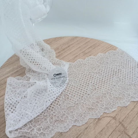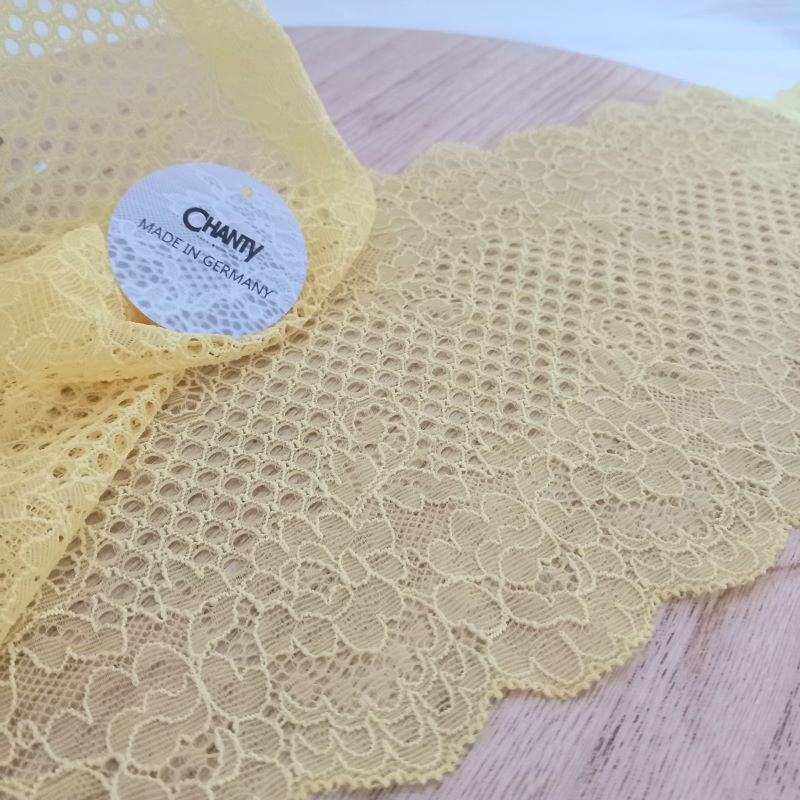 Depending on the quantity, lace fabrics will either be put onto a roll/spool and packed into cartons or, if the quantity is low, they may also be just folded and put into an envelope. The meterage per roll/spool varies depending on the width.