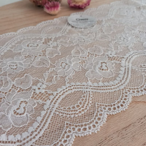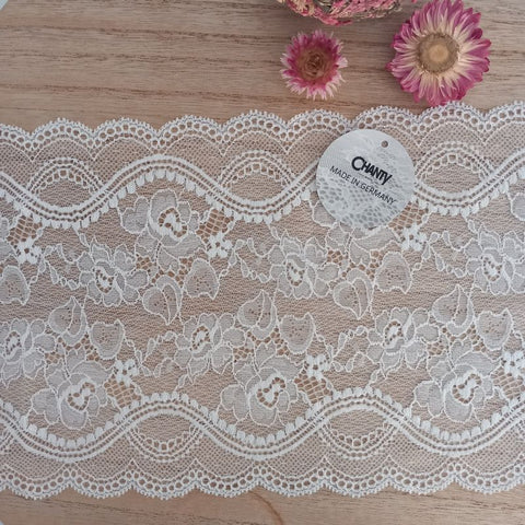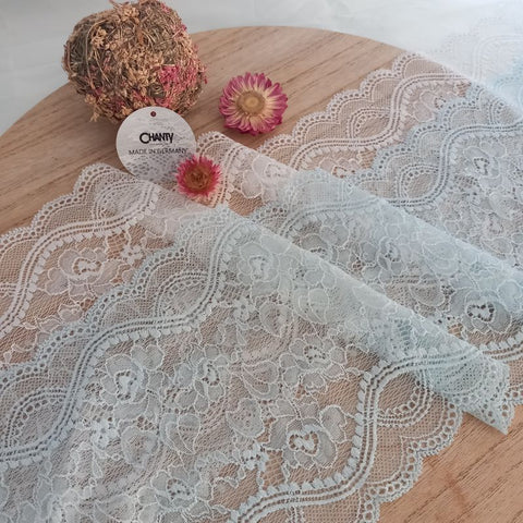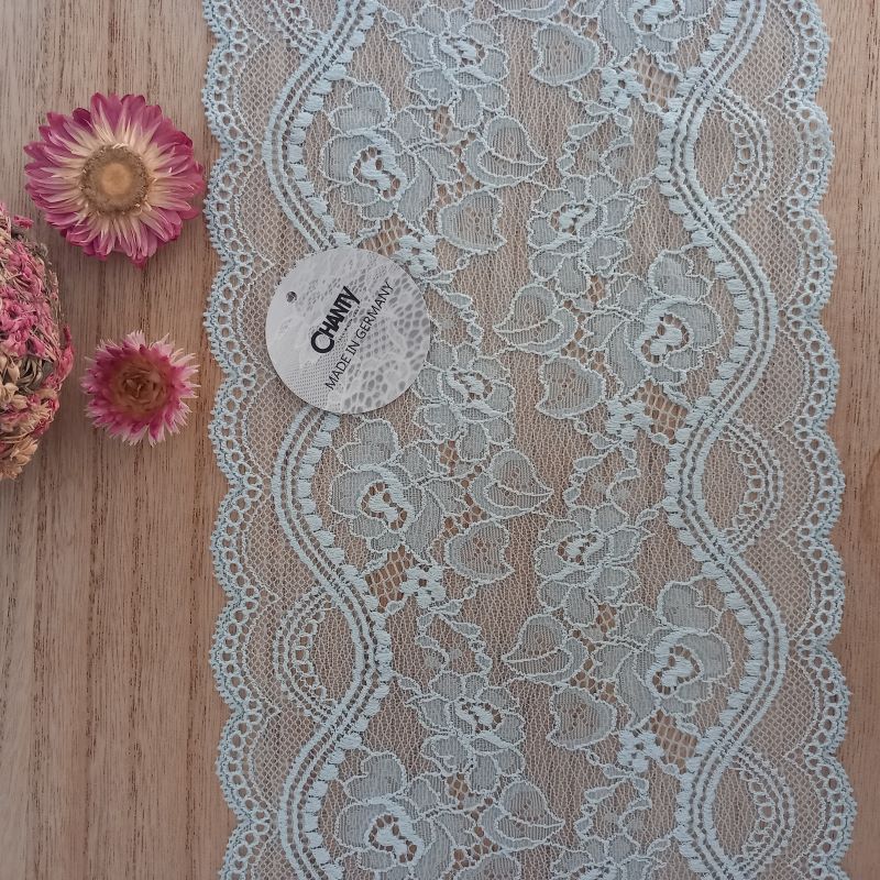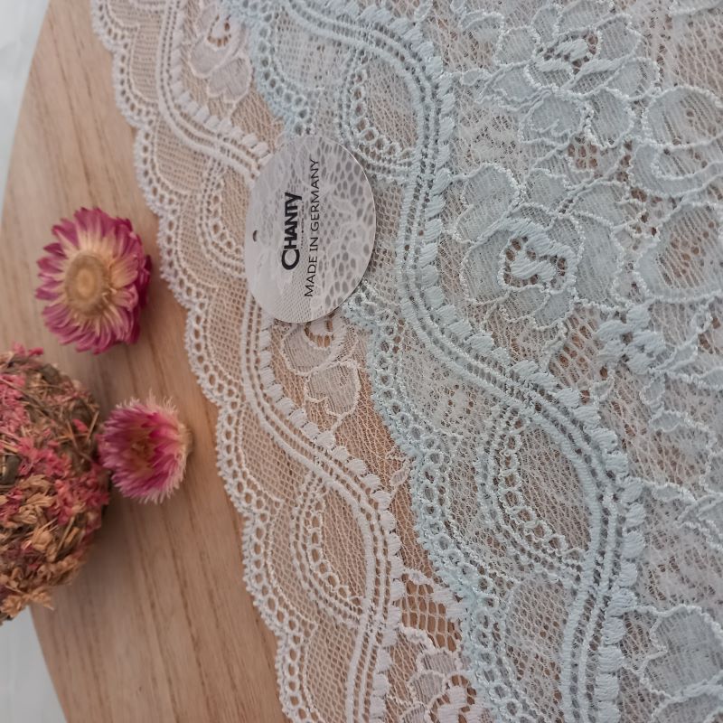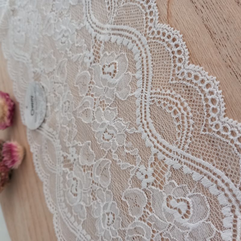 Depending on the quantity, lace fabrics will either be put onto a roll/spool and packed into cartons or, if the quantity is low, they may also be just folded and put into an envelope. The meterage per roll/spool varies depending on the width.