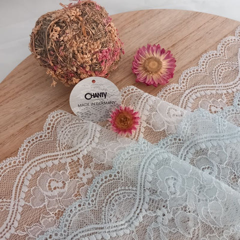 Lace TypeGalloon Laces are distinguished by having scallops or having other shape designs on both edges. They are mostly symmetrical and available in many widths, making them one of the most versatile lace types. These laces are usually elastic and stretchy. So you want to use some lace for something? Get yourself some Galloon laces! |