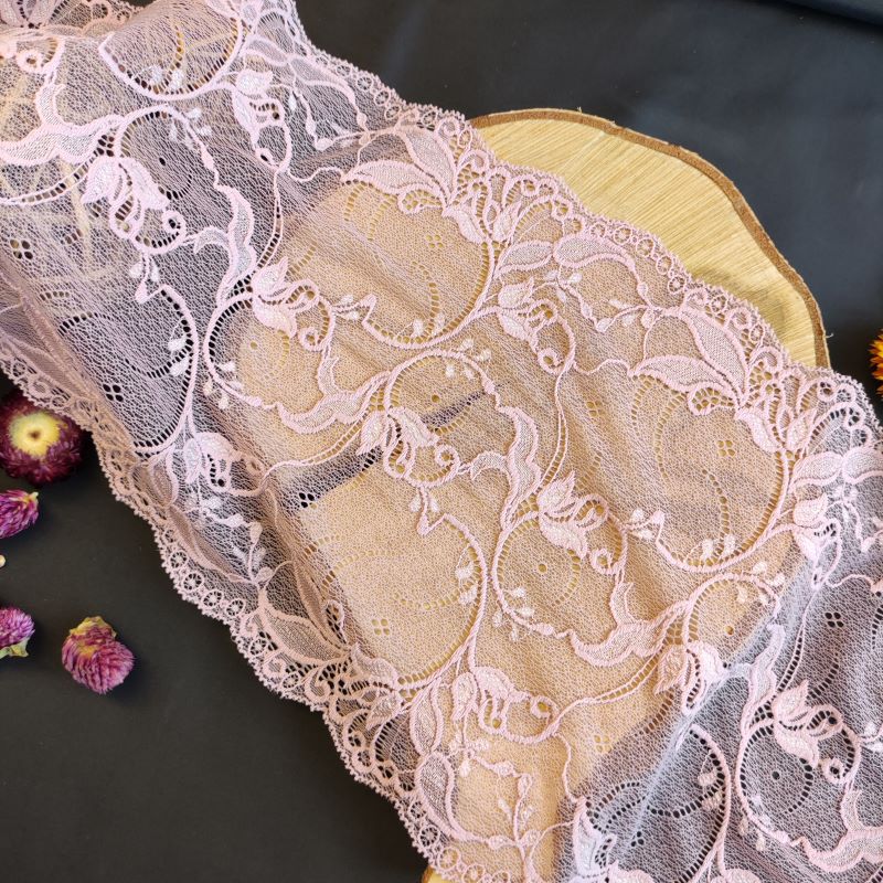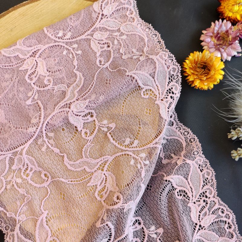 Lace TypeGalloon Laces are distinguished by having scallops or having other shape designs on both edges. They are mostly symmetrical and available in many widths, making them one of the most versatile lace types. These laces are usually elastic and stretchy. So you want to use some lace for something? Get yourself some Galloon laces! |