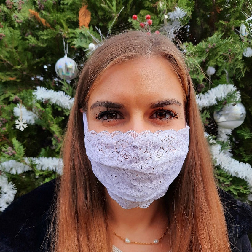 Please note the width & circumference varies depending on which lace fabric is used to sew the mask.