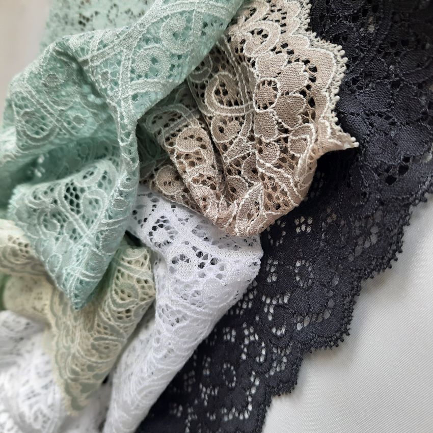 Lace TypeGalloon Laces are distinguished by having scallops or having other shape designs on both edges. They are mostly symmetrical and available in many widths, making them one of the most versatile lace types. These laces are usually elastic and stretchy. So you want to use some lace for something? Get yourself some Galloon laces! |