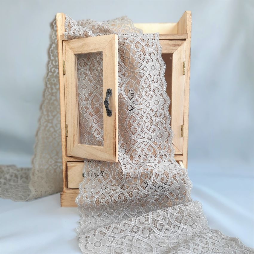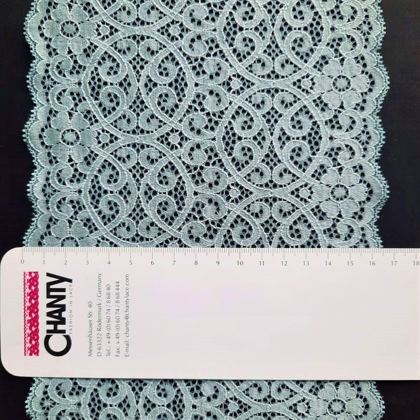 Depending on the quantity, lace fabrics will either be put onto a roll/spool and packed into cartons or, if the quantity is low, they may also be just folded and put into an envelope. The meterage per roll/spool varies depending on the width.