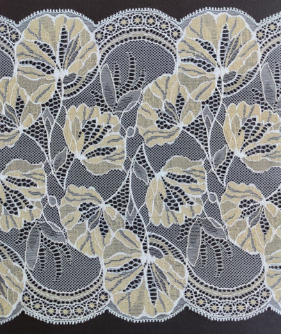 Lace TypeGalloon Laces are distinguished by having scallops or having other shape designs on both edges. They are mostly symmetrical and available in many widths, making them one of the most versatile lace types. These laces are usually elastic and stretchy. So you want to use some lace for something? Get yourself some Galloon laces! |