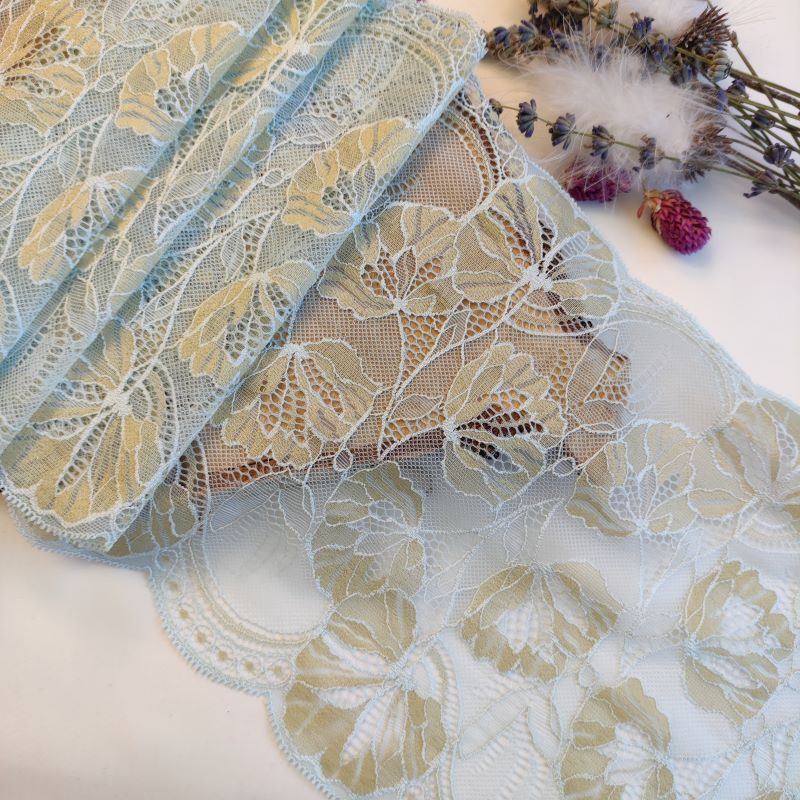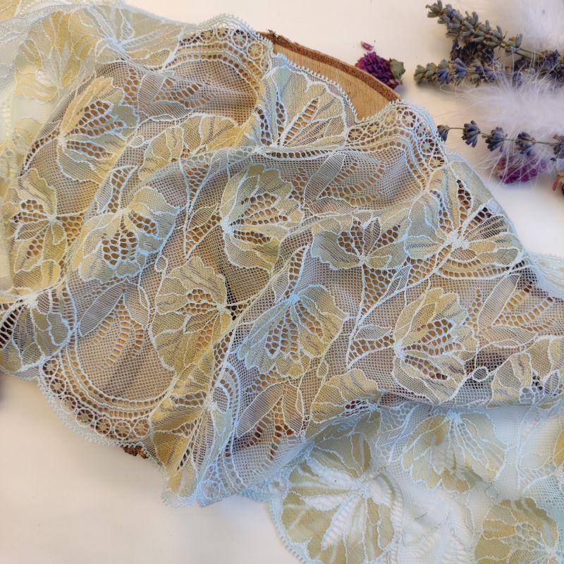 Depending on the quantity, lace fabrics will either be put onto a roll/spool and packed into cartons or, if the quantity is low, they may also be just folded and put into an envelope. The meterage per roll/spool varies depending on the width.