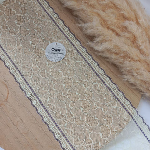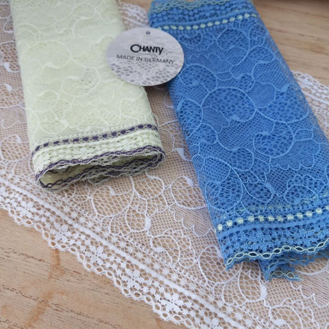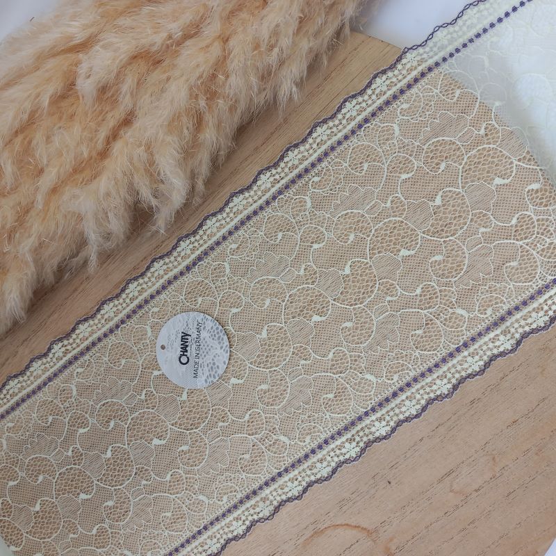 Lace TypeGalloon Laces are distinguished by having scallops or having other shape designs on both edges. They are mostly symmetrical and available in many widths, making them one of the most versatile lace types. These laces are usually elastic and stretchy. So you want to use some lace for something? Get yourself some Galloon laces! |