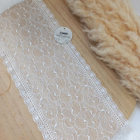 Depending on the quantity, lace fabrics will either be put onto a roll/spool and packed into cartons or, if the quantity is low, they may also be just folded and put into an envelope. The meterage per roll/spool varies depending on the width.
