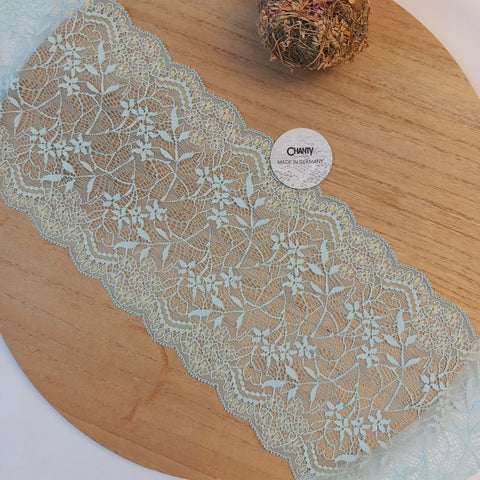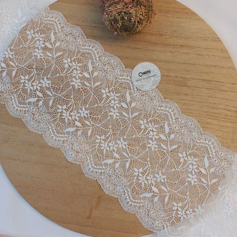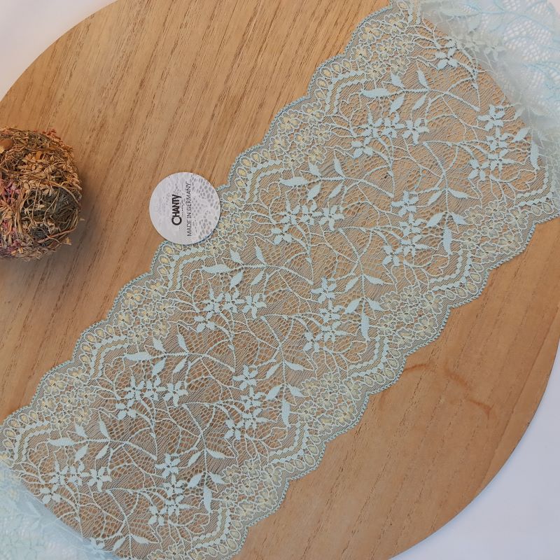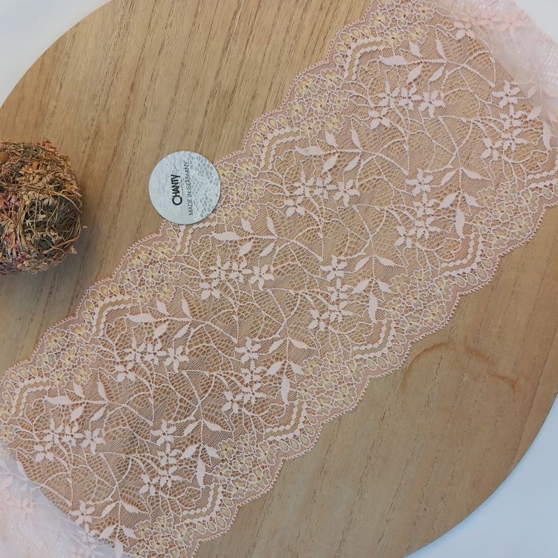Depending on the quantity, lace fabrics will either be put onto a roll/spool and packed into cartons or, if the quantity is low, they may also be just folded and put into an envelope. The meterage per roll/spool varies depending on the width.